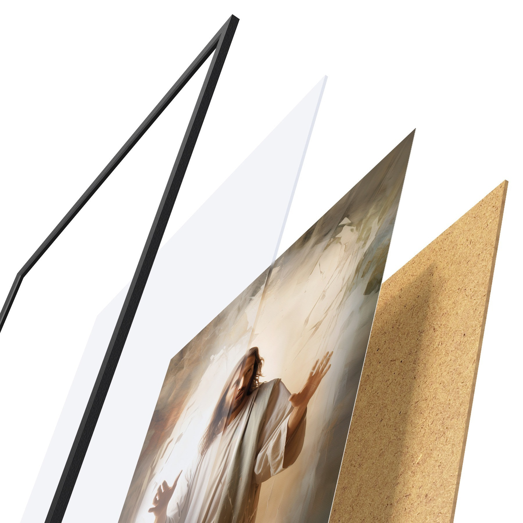 Постер складається з рами, оргскла, надрукованого зображення та підкладки з ДСП. Завдяки кріпленням на звороті плакат можна одразу ж повісити на стіну.