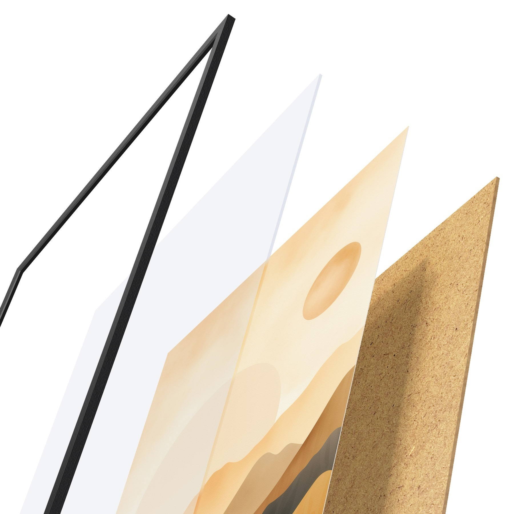Постер складається з рами, оргскла, надрукованого зображення та підкладки з ДСП. Завдяки кріпленням на звороті плакат можна одразу ж повісити на стіну.