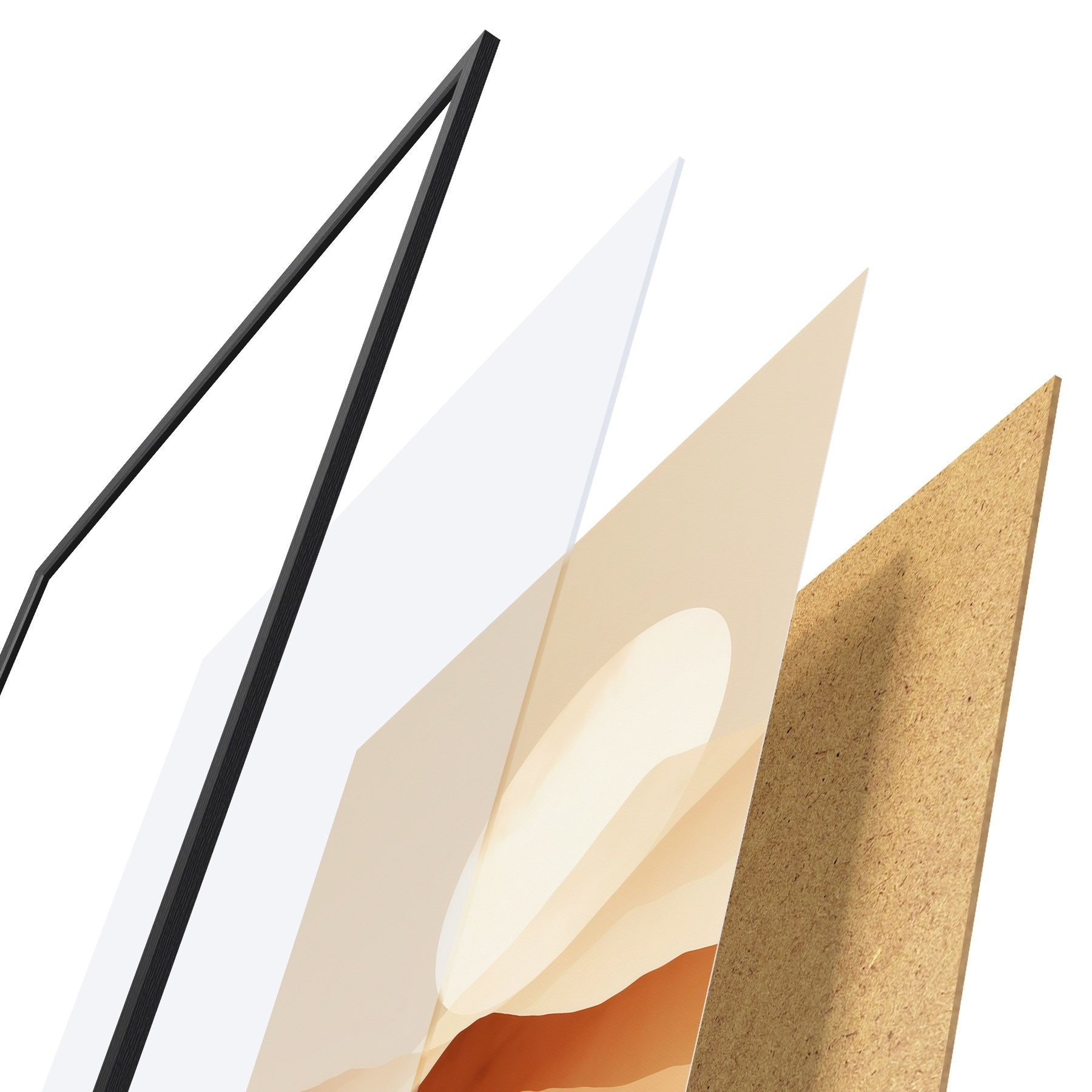 Постер складається з рами, оргскла, надрукованого зображення та підкладки з ДСП. Завдяки кріпленням на звороті плакат можна одразу ж повісити на стіну.