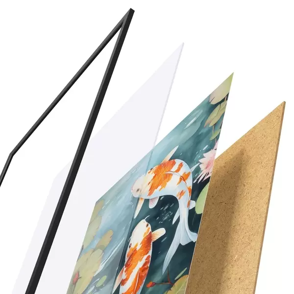 Постер складається з рами, оргскла, надрукованого зображення та підкладки з ДСП. Завдяки кріпленням на звороті плакат можна одразу ж повісити на стіну.
