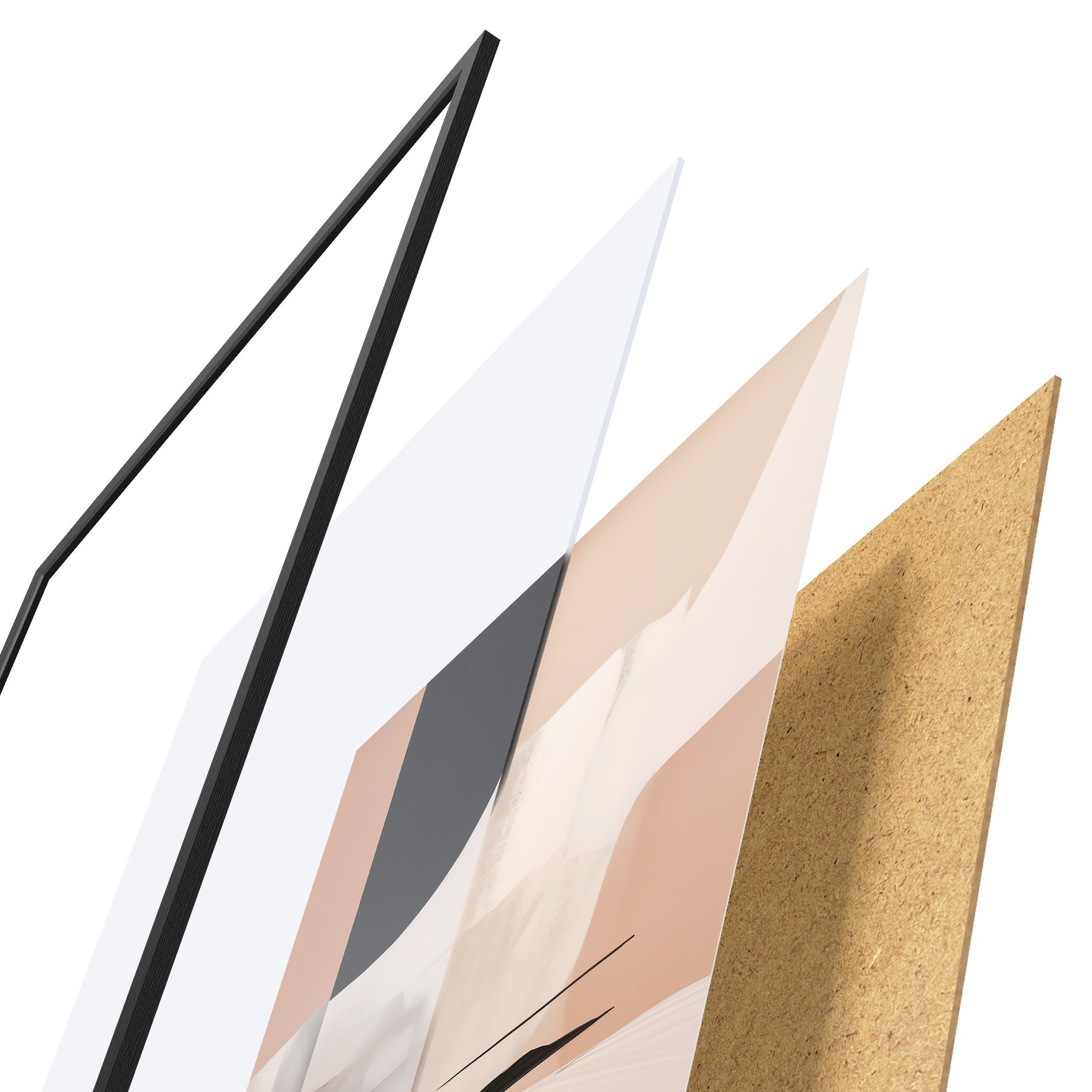 Постер складається з рами, оргскла, надрукованого зображення та підкладки з ДСП. Завдяки кріпленням на звороті плакат можна одразу ж повісити на стіну.