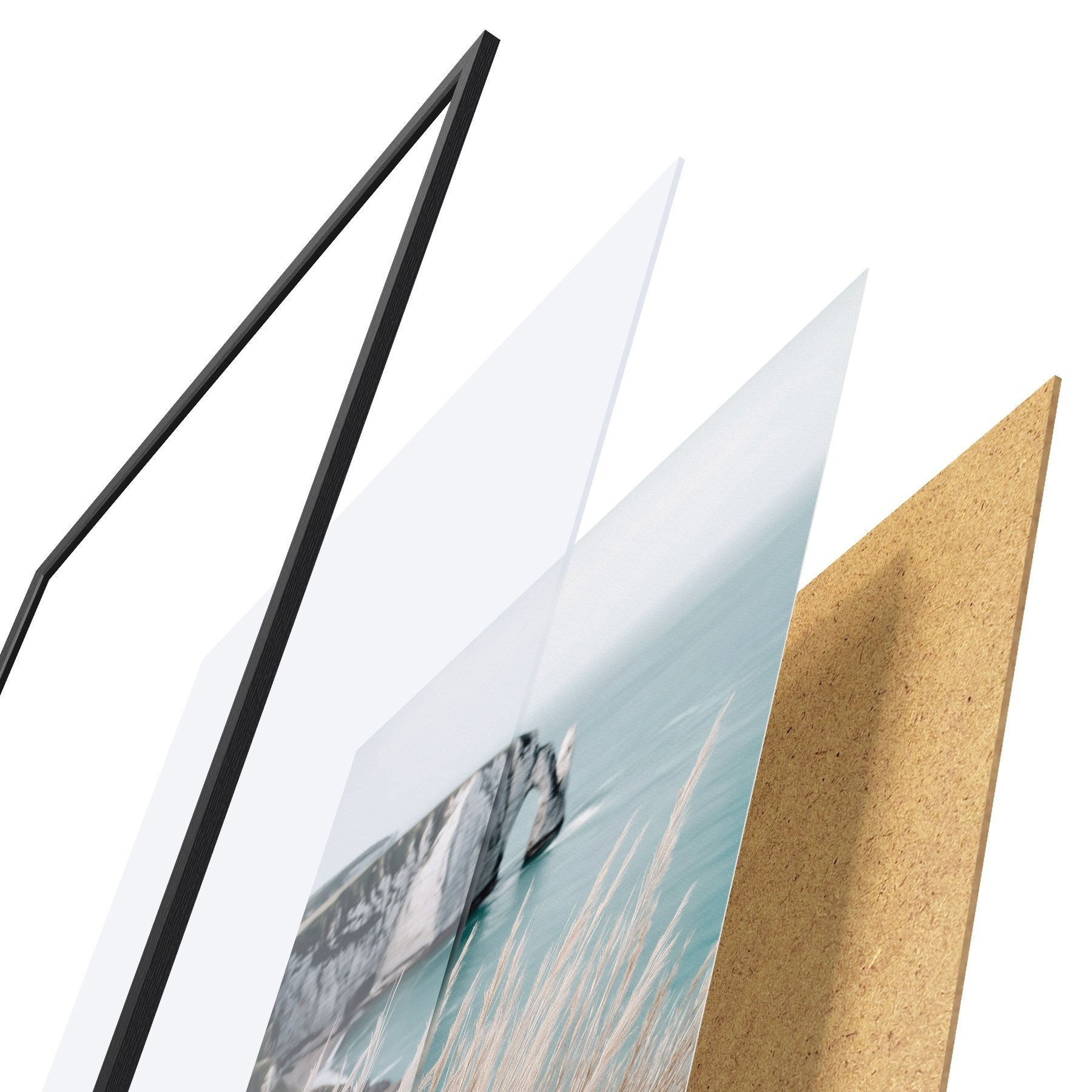Постер складається з рами, оргскла, надрукованого зображення та підкладки з ДСП. Завдяки кріпленням на звороті плакат можна одразу ж повісити на стіну.