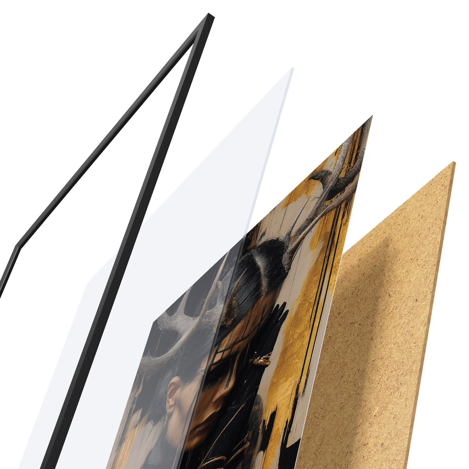 Постер складається з рами, оргскла, надрукованого зображення та підкладки з ДСП. Завдяки кріпленням на звороті плакат можна одразу ж повісити на стіну.
