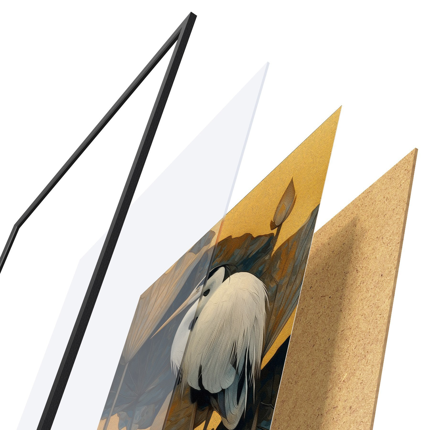 Постер складається з рами, оргскла, надрукованого зображення та підкладки з ДСП. Завдяки кріпленням на звороті плакат можна одразу ж повісити на стіну.