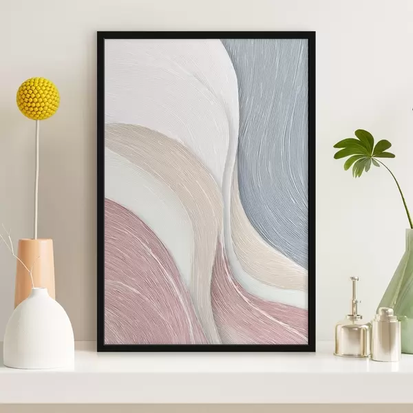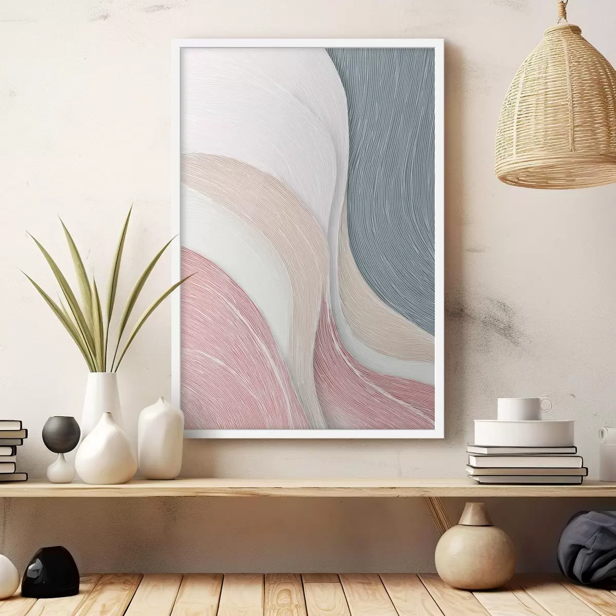Постер на стіну Легкі абстрактні хвилі в ніжно-рожевих і сіро-білих відтінках Nr f46153