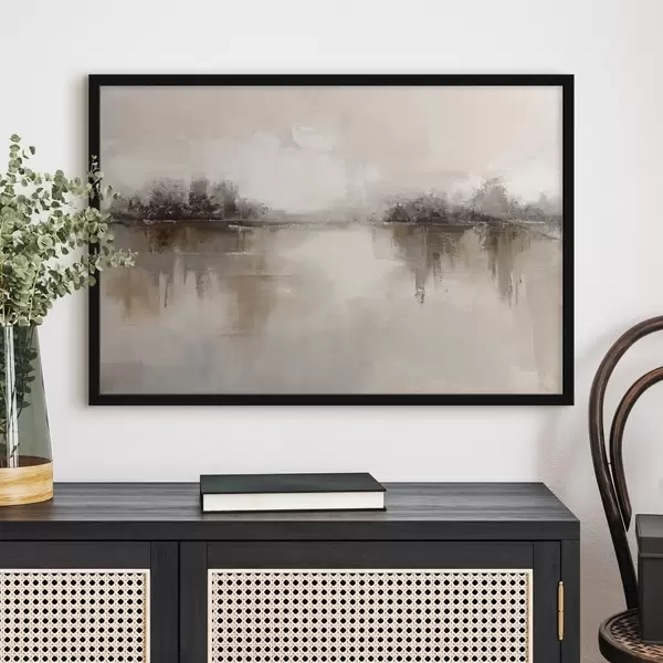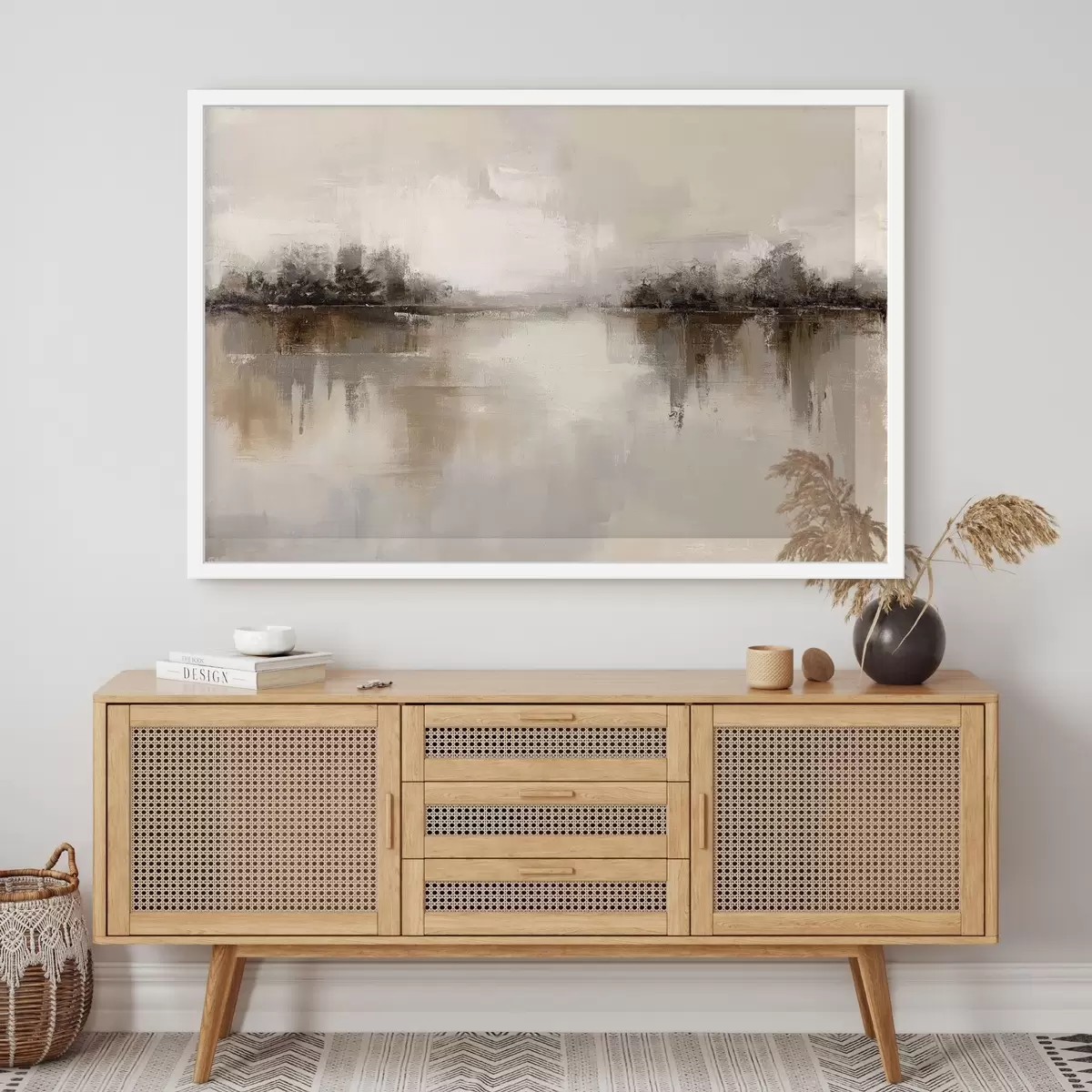 Постер на стіну М'який ландшафт з озером в теплих бежево-сірих тонах Nr f46158