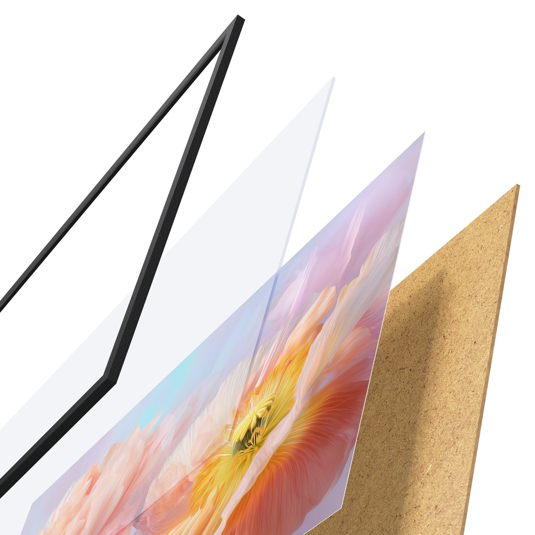 Постер складається з рами, оргскла, надрукованого зображення та підкладки з ДСП. Завдяки кріпленням на звороті плакат можна одразу ж повісити на стіну.