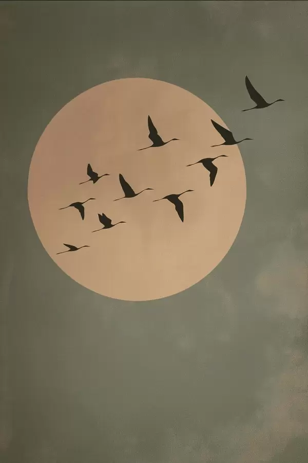 Постер на стіну Зграя птахів, що летить на тлі великого теплого місяця Nr f46162