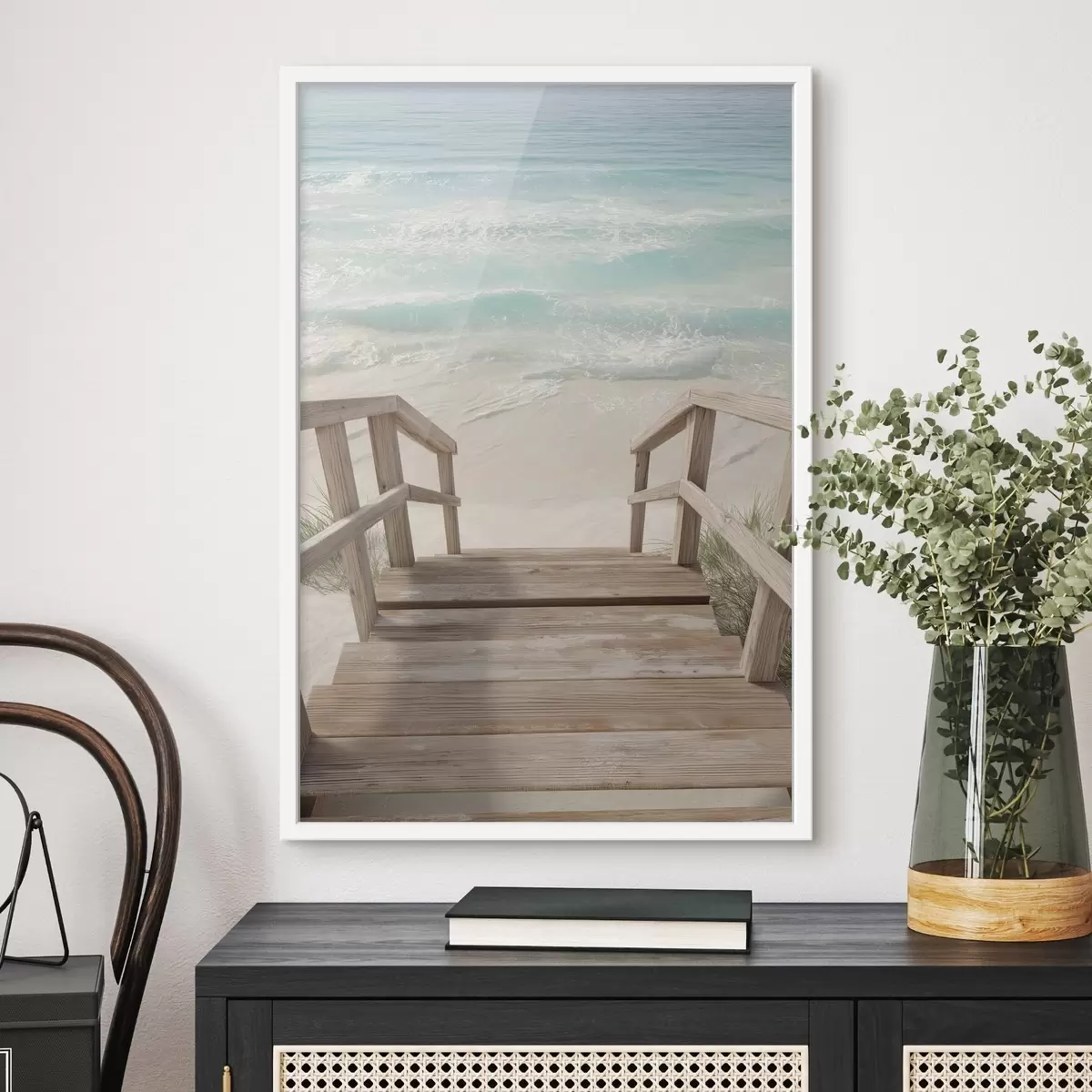 Постер на стіну Дерев'яні сходи, що ведуть до бірюзового пляжу Nr f46163