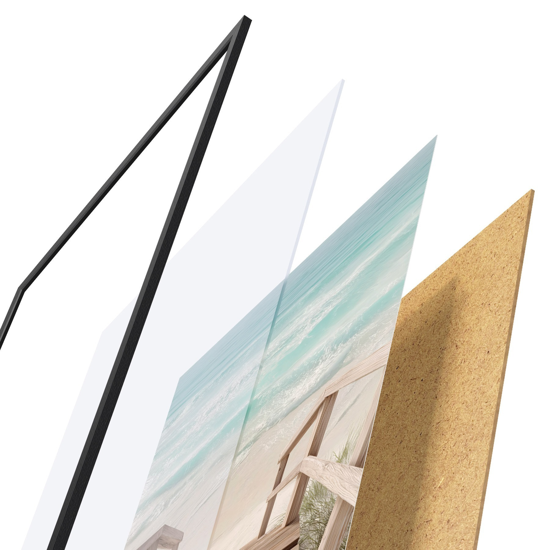 Постер складається з рами, оргскла, надрукованого зображення та підкладки з ДСП. Завдяки кріпленням на звороті плакат можна одразу ж повісити на стіну.
