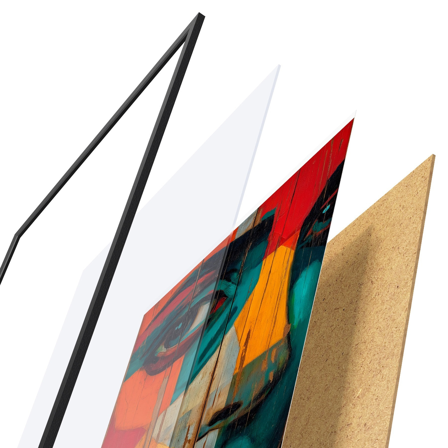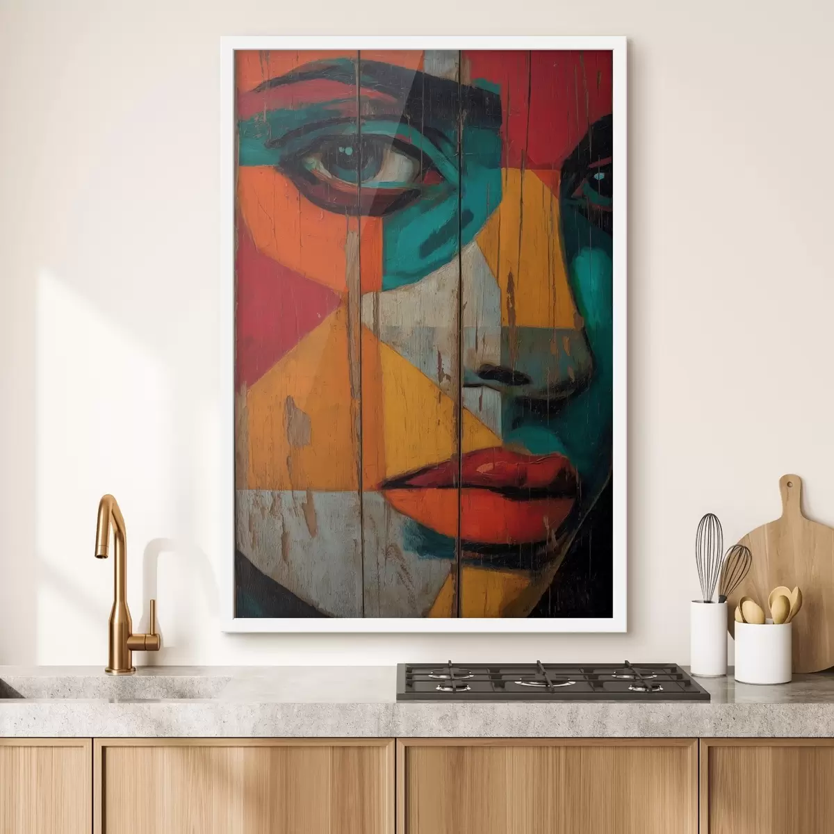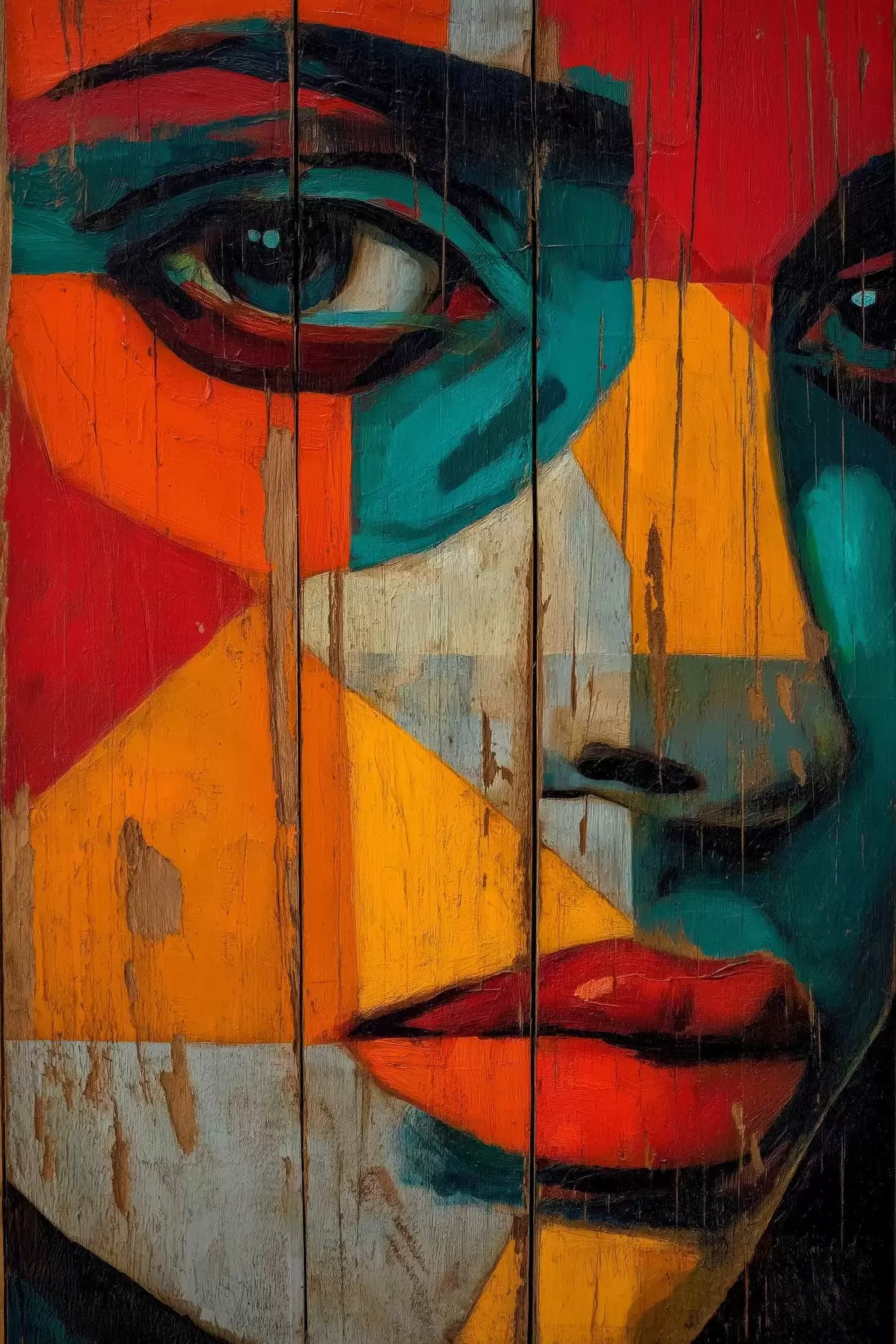 Постер на стіну Яскравий геометричний портрет на дерев'яних дошках Nr f46165