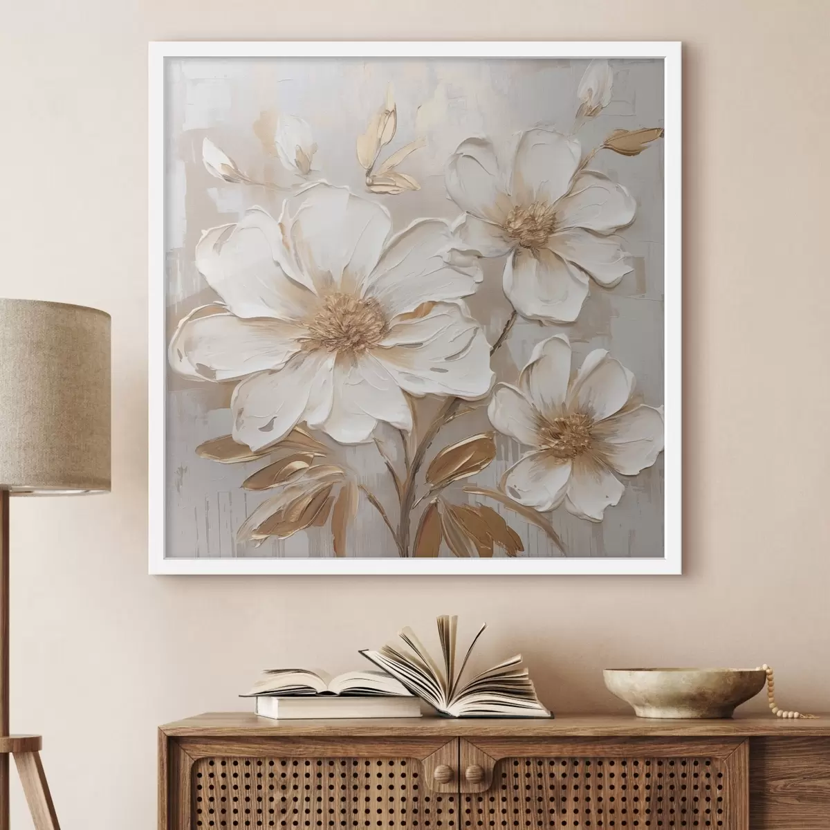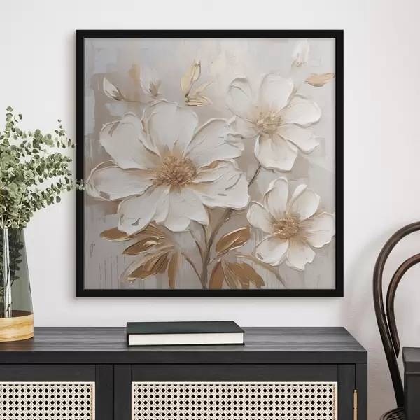 Постер на стіну Текстуровані квіти на світлому тлі з теплими відтінками Nr f46166