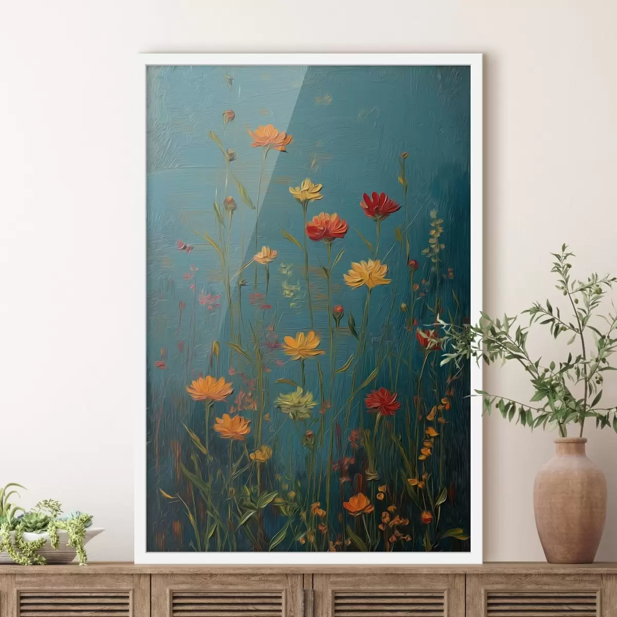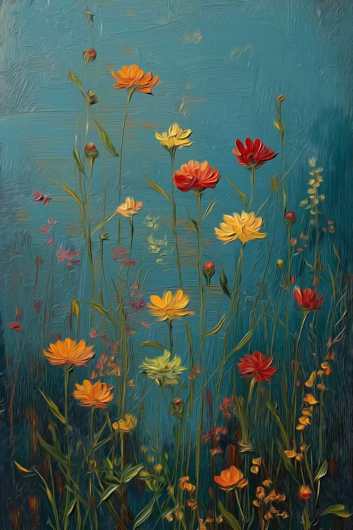 Постер на стіну Польові квіти на глибокому бірюзовому тлі Nr f46169