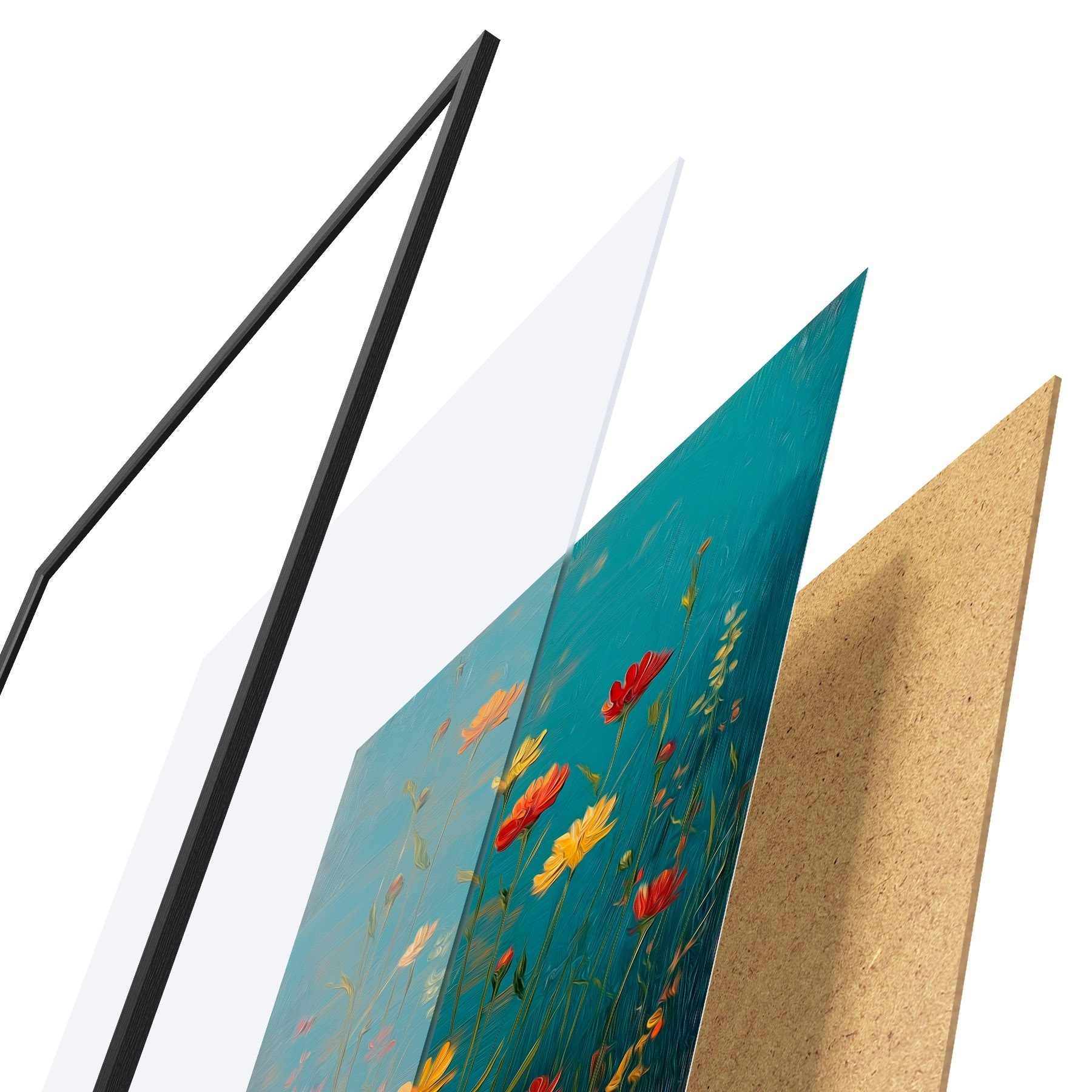 Постер складається з рами, оргскла, надрукованого зображення та підкладки з ДСП. Завдяки кріпленням на звороті плакат можна одразу ж повісити на стіну.