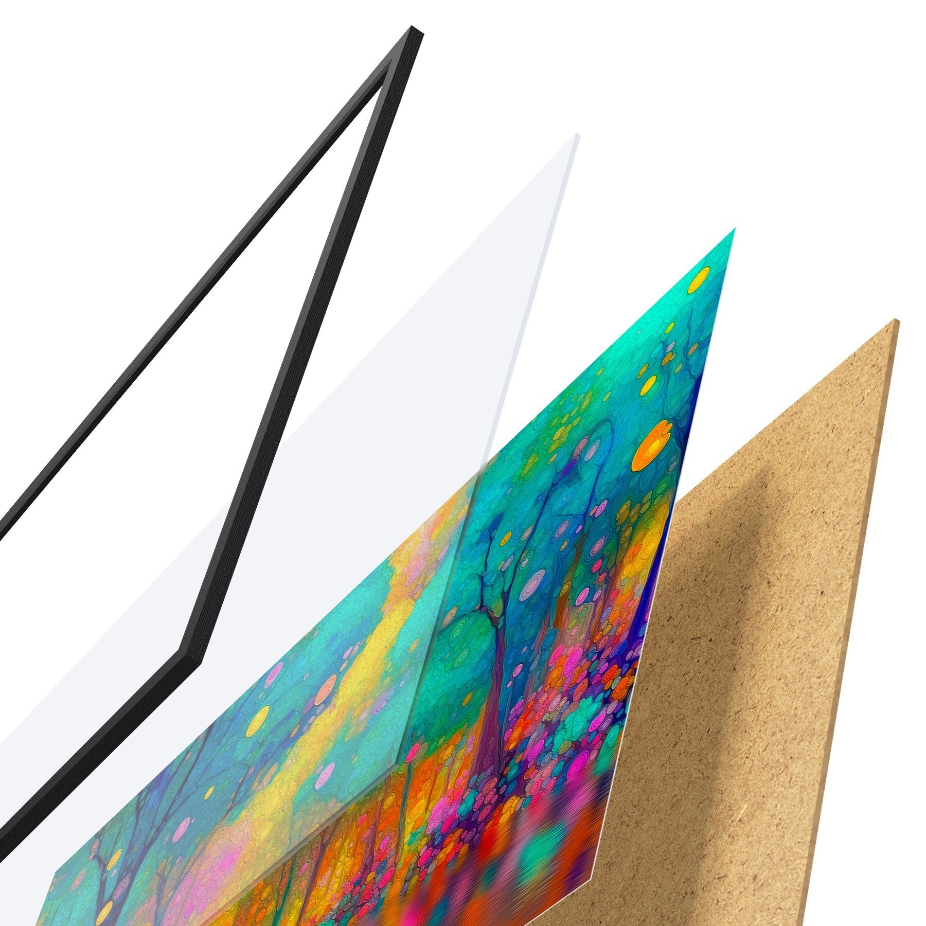 Постер складається з рами, оргскла, надрукованого зображення та підкладки з ДСП. Завдяки кріпленням на звороті плакат можна одразу ж повісити на стіну.
