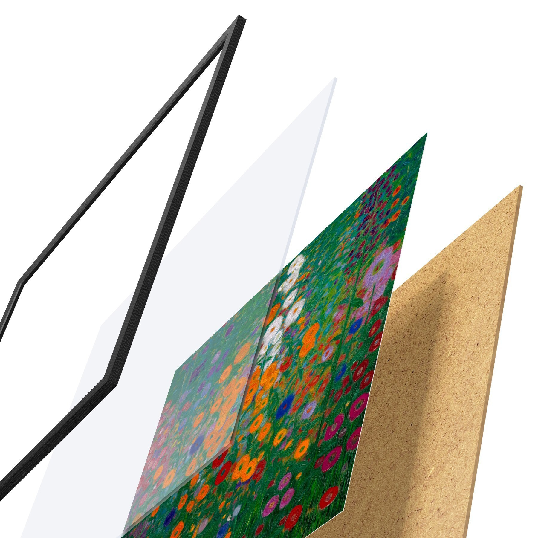 Постер складається з рами, оргскла, надрукованого зображення та підкладки з ДСП. Завдяки кріпленням на звороті плакат можна одразу ж повісити на стіну.