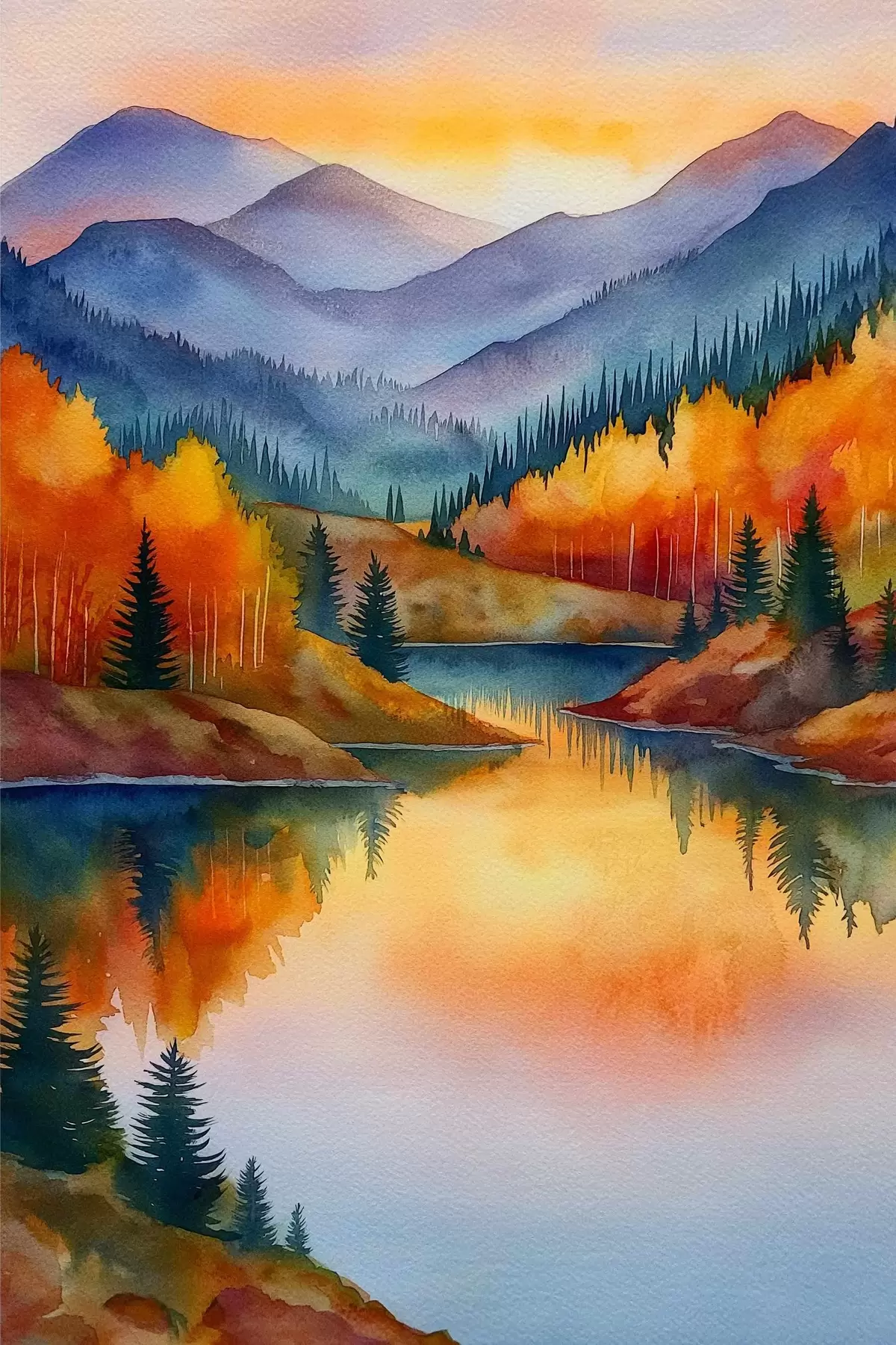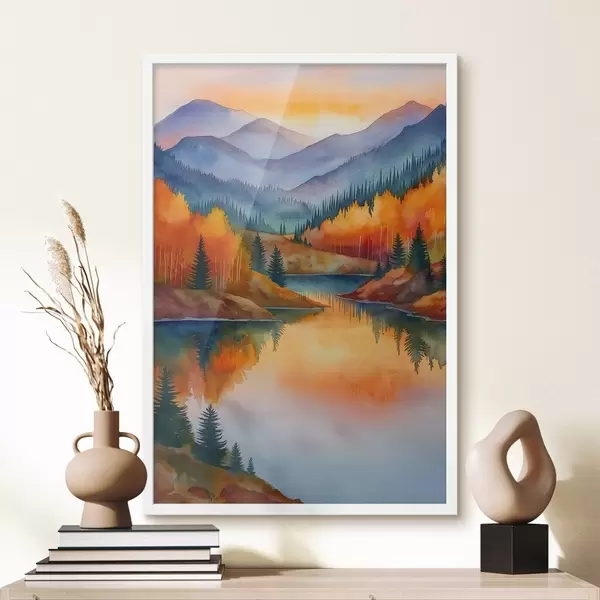 Постер на стіну Осінній пейзаж з горами, що відбиваються в спокійному озері Nr f46174