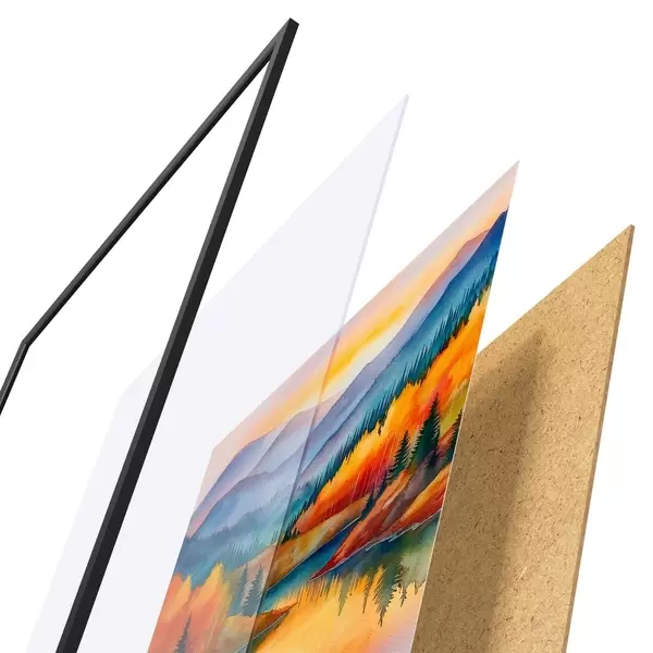 Постер складається з рами, оргскла, надрукованого зображення та підкладки з ДСП. Завдяки кріпленням на звороті плакат можна одразу ж повісити на стіну.