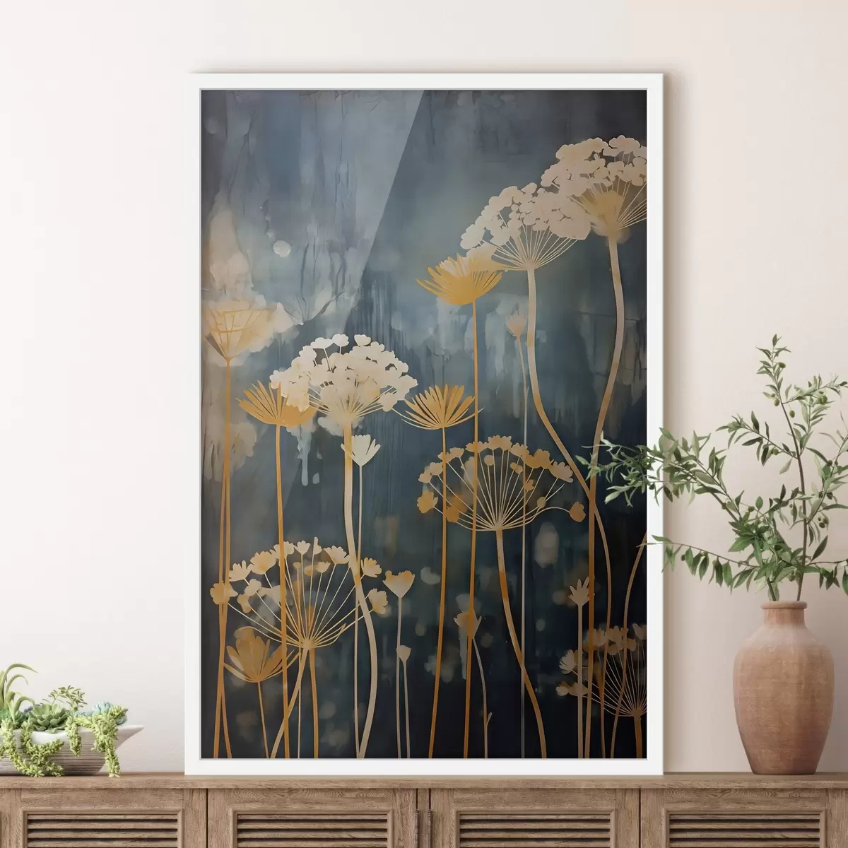 Постер на стіну Стилізовані квіти з тонкими стеблами на темному тлі Nr f46188