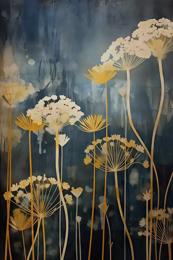Постер на стіну Стилізовані квіти з тонкими стеблами на темному тлі Nr f46188