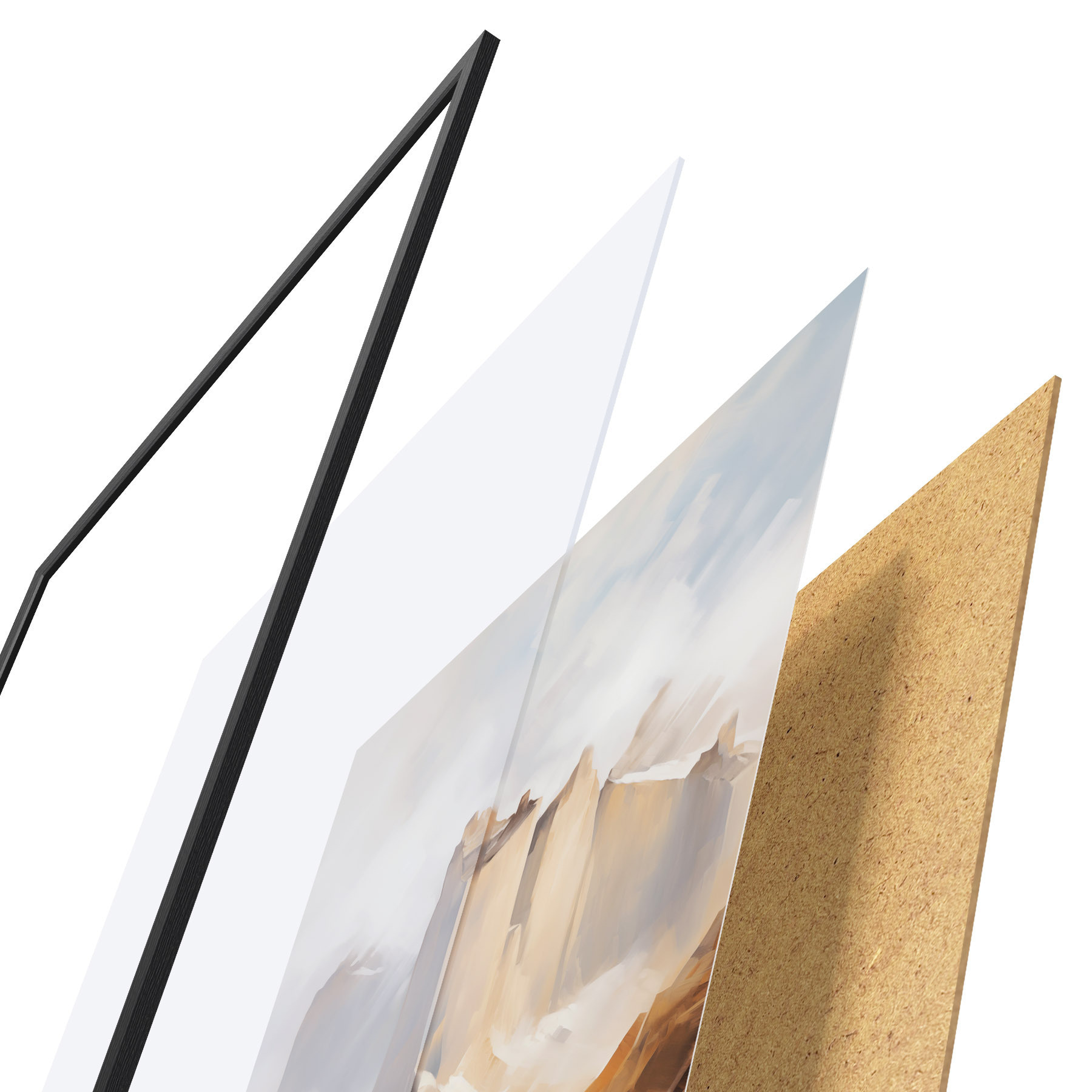Постер складається з рами, оргскла, надрукованого зображення та підкладки з ДСП. Завдяки кріпленням на звороті плакат можна одразу ж повісити на стіну.