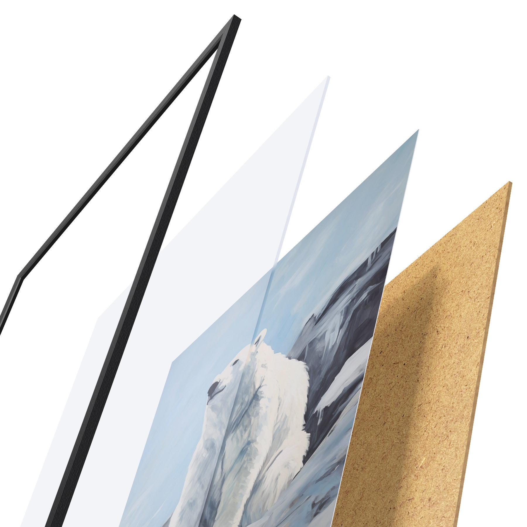 Постер складається з рами, оргскла, надрукованого зображення та підкладки з ДСП. Завдяки кріпленням на звороті плакат можна одразу ж повісити на стіну.