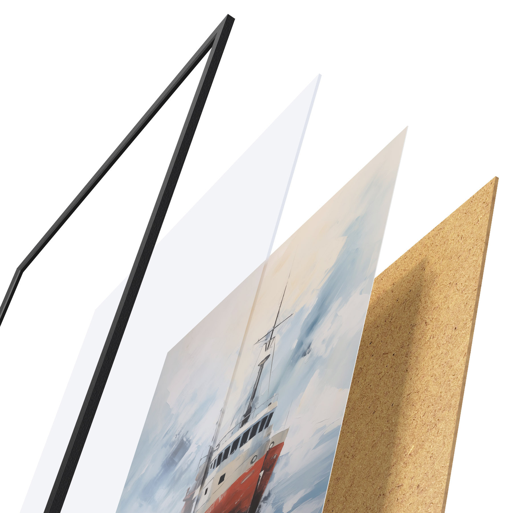 Постер складається з рами, оргскла, надрукованого зображення та підкладки з ДСП. Завдяки кріпленням на звороті плакат можна одразу ж повісити на стіну.