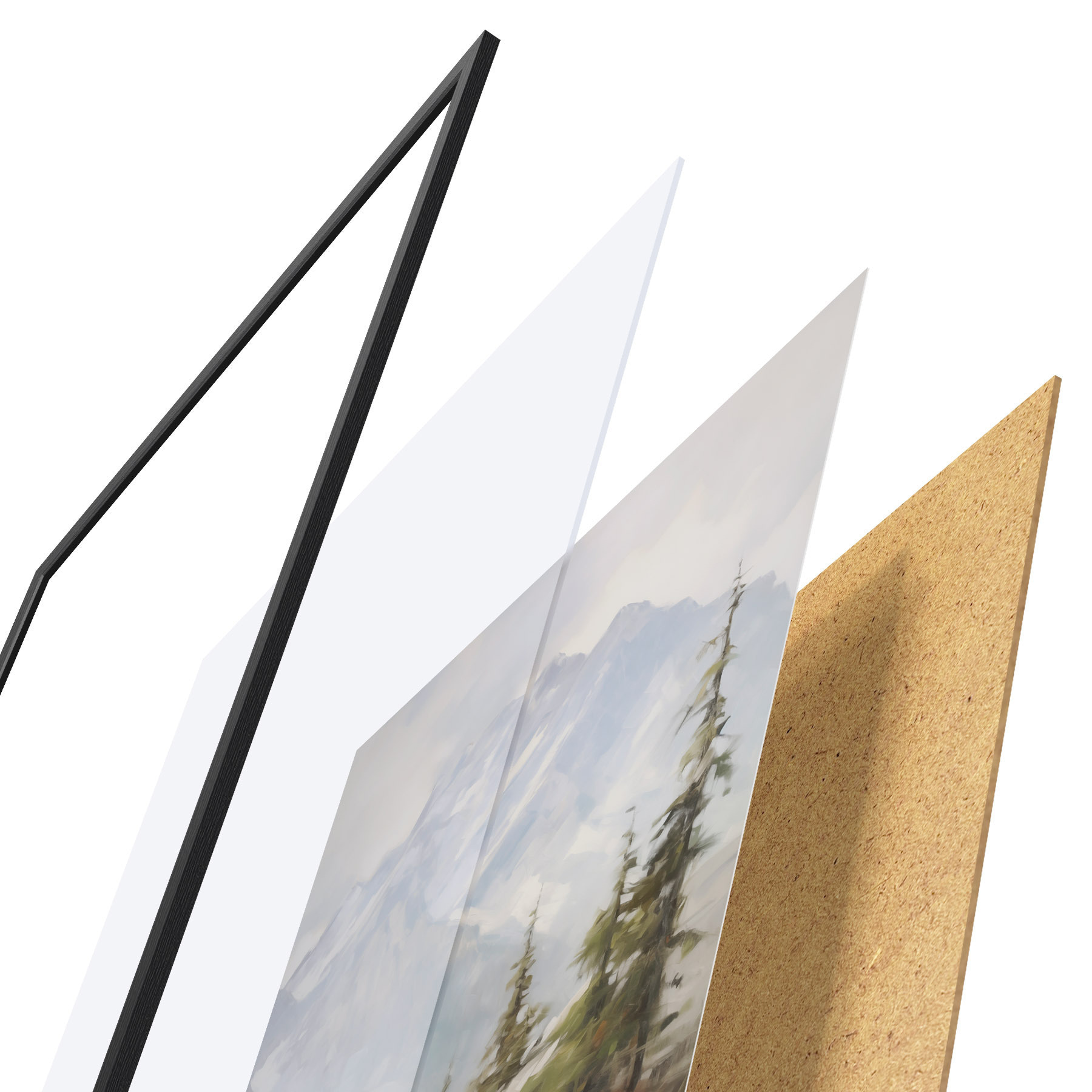 Постер складається з рами, оргскла, надрукованого зображення та підкладки з ДСП. Завдяки кріпленням на звороті плакат можна одразу ж повісити на стіну.