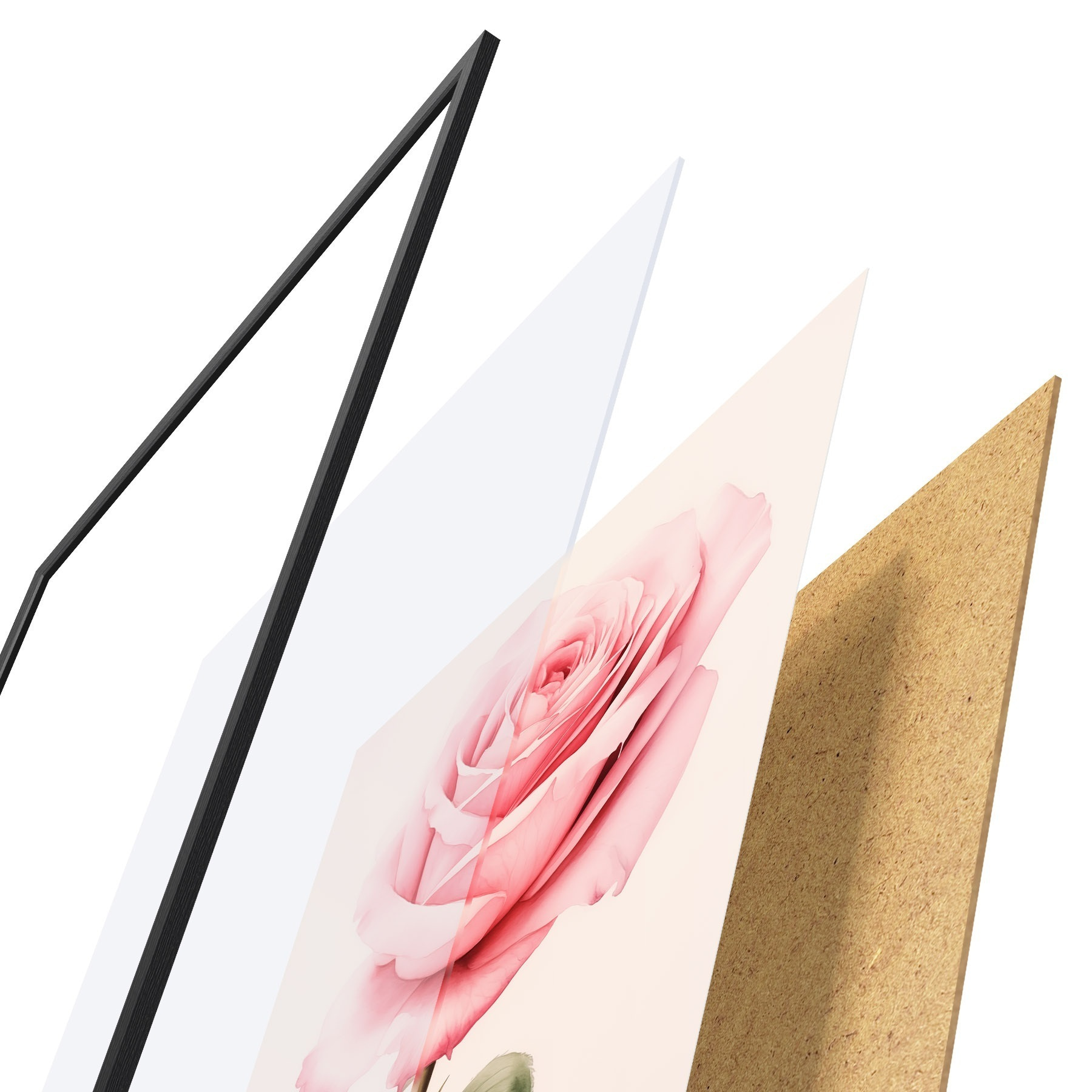 Постер складається з рами, оргскла, надрукованого зображення та підкладки з ДСП. Завдяки кріпленням на звороті плакат можна одразу ж повісити на стіну.