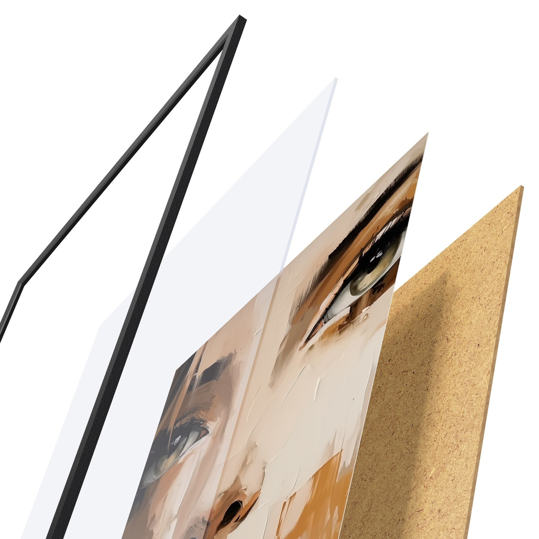 Постер складається з рами, оргскла, надрукованого зображення та підкладки з ДСП. Завдяки кріпленням на звороті плакат можна одразу ж повісити на стіну.