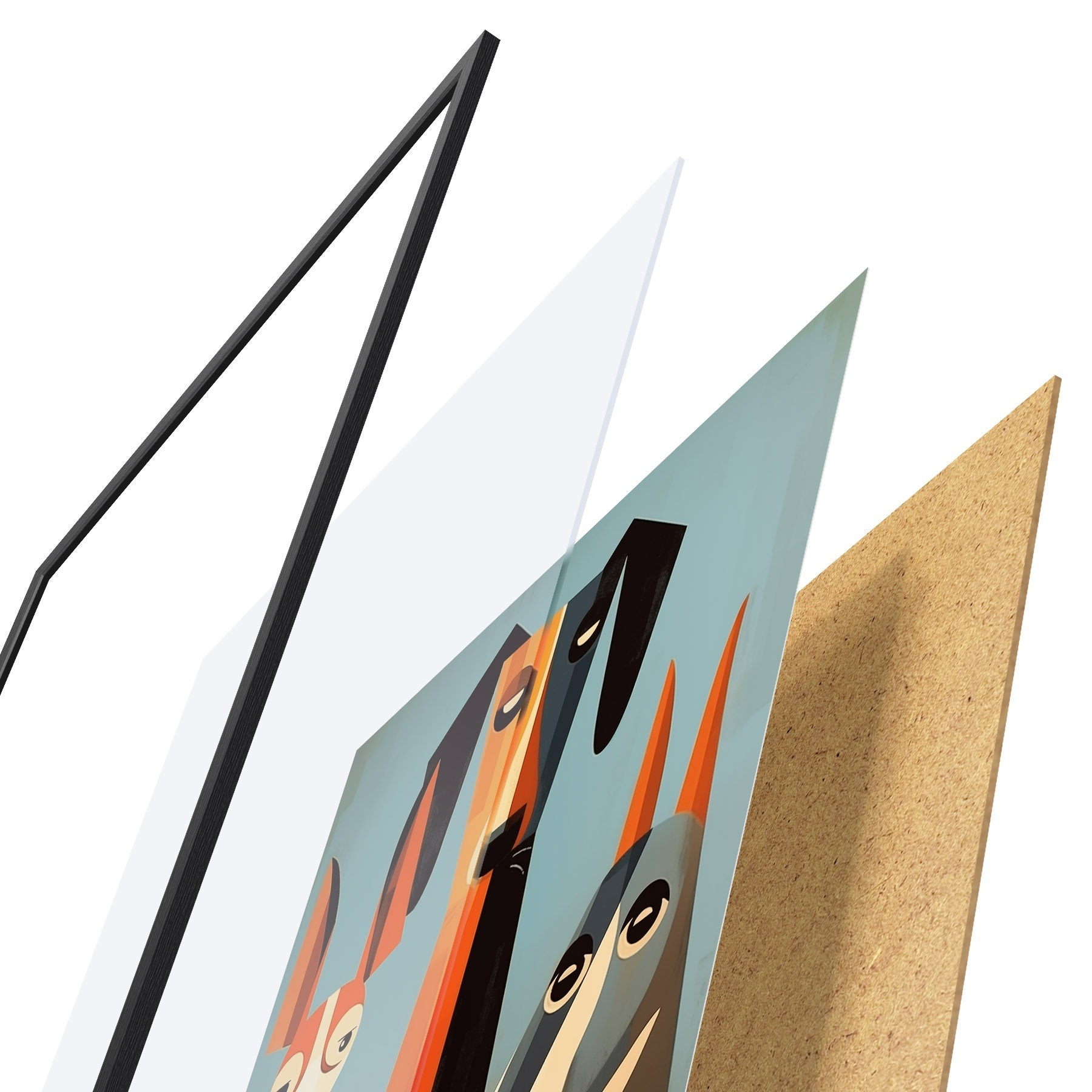 Постер складається з рами, оргскла, надрукованого зображення та підкладки з ДСП. Завдяки кріпленням на звороті плакат можна одразу ж повісити на стіну.