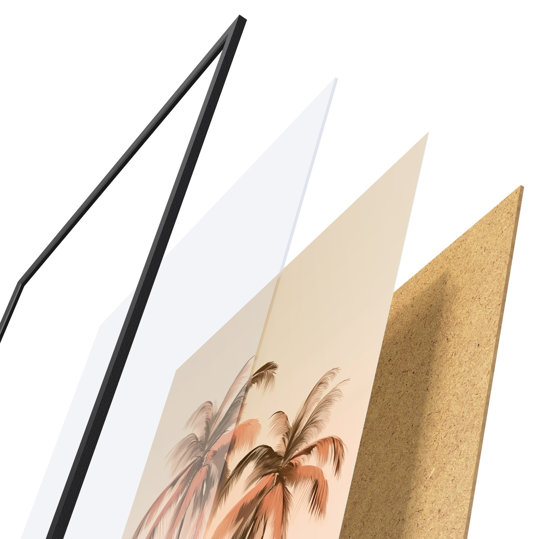 Постер складається з рами, оргскла, надрукованого зображення та підкладки з ДСП. Завдяки кріпленням на звороті плакат можна одразу ж повісити на стіну.