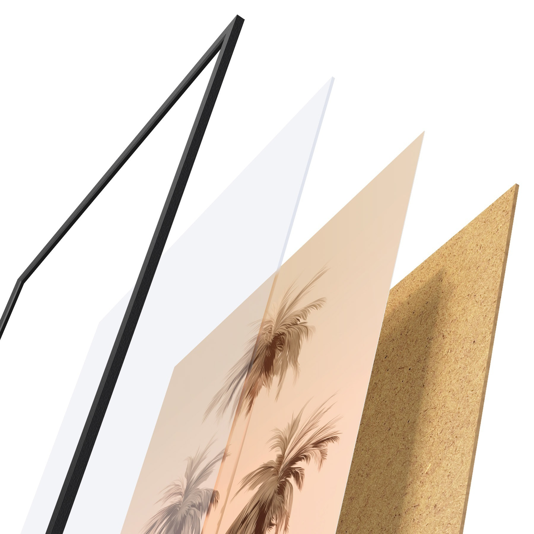 Постер складається з рами, оргскла, надрукованого зображення та підкладки з ДСП. Завдяки кріпленням на звороті плакат можна одразу ж повісити на стіну.