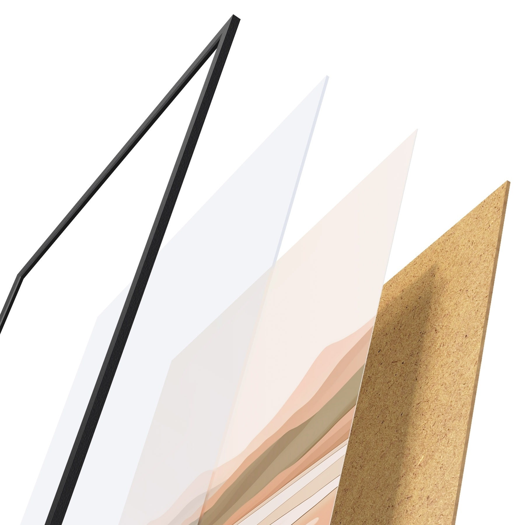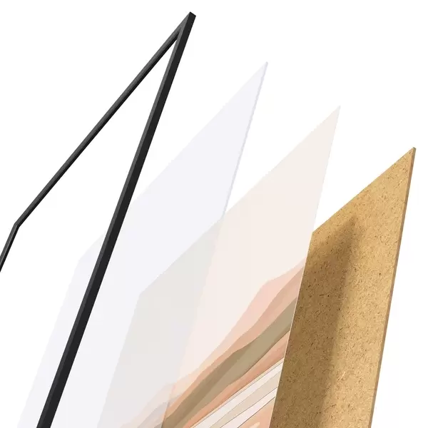 Постер складається з рами, оргскла, надрукованого зображення та підкладки з ДСП. Завдяки кріпленням на звороті плакат можна одразу ж повісити на стіну.