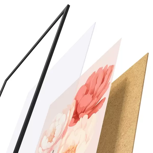 Постер складається з рами, оргскла, надрукованого зображення та підкладки з ДСП. Завдяки кріпленням на звороті плакат можна одразу ж повісити на стіну.