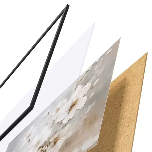 Постер складається з рами, оргскла, надрукованого зображення та підкладки з ДСП. Завдяки кріпленням на звороті плакат можна одразу ж повісити на стіну.