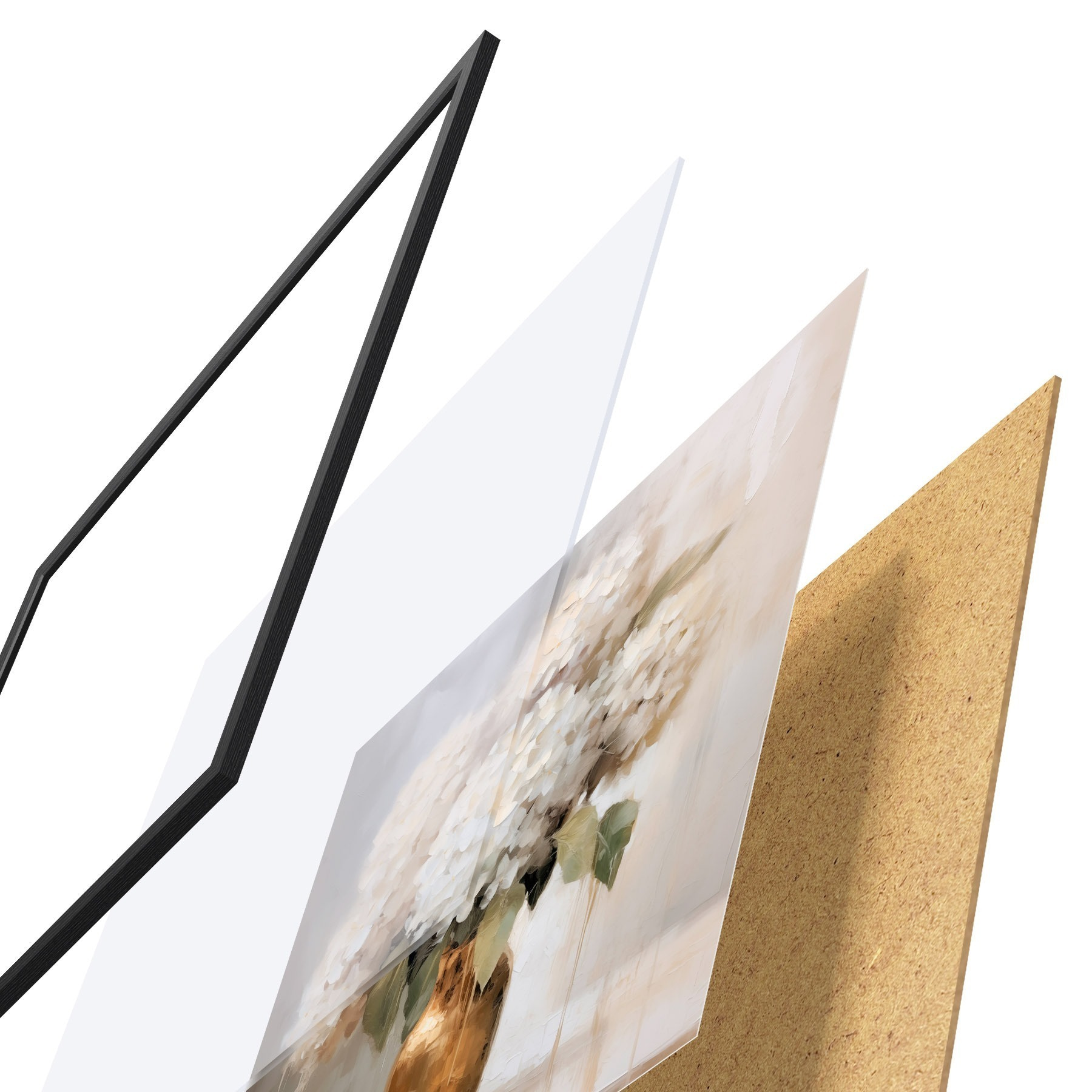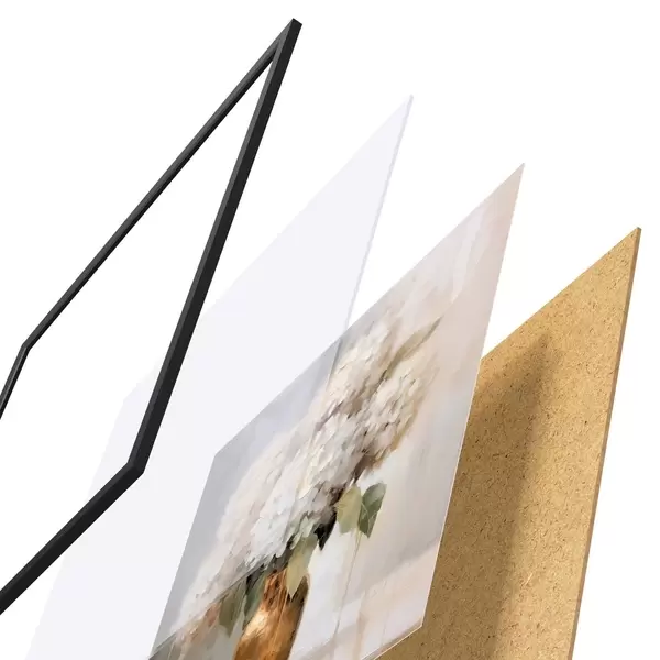 Постер складається з рами, оргскла, надрукованого зображення та підкладки з ДСП. Завдяки кріпленням на звороті плакат можна одразу ж повісити на стіну.