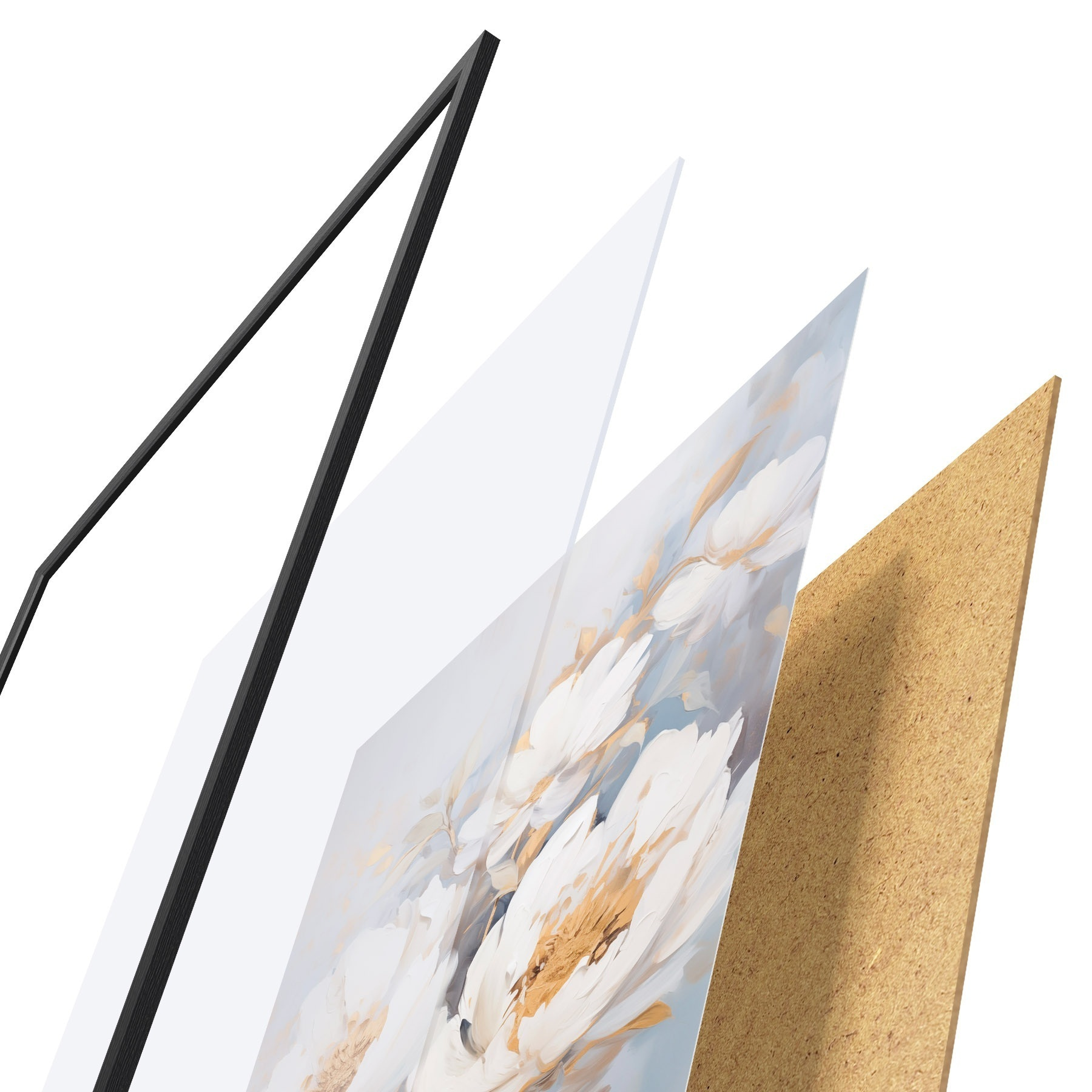 Постер складається з рами, оргскла, надрукованого зображення та підкладки з ДСП. Завдяки кріпленням на звороті плакат можна одразу ж повісити на стіну.