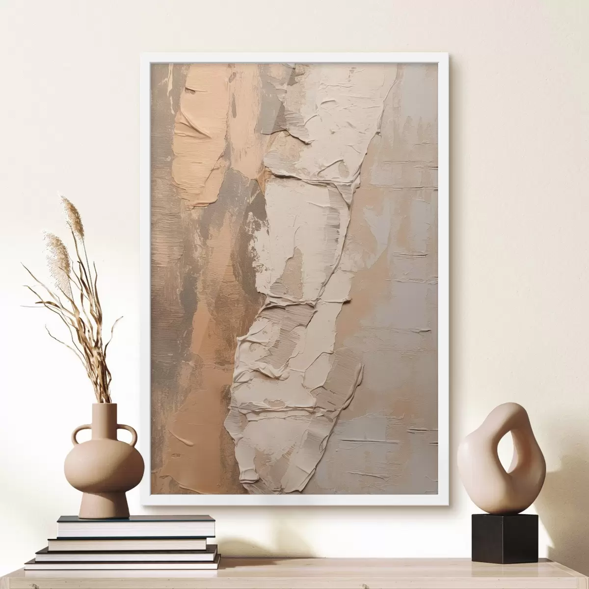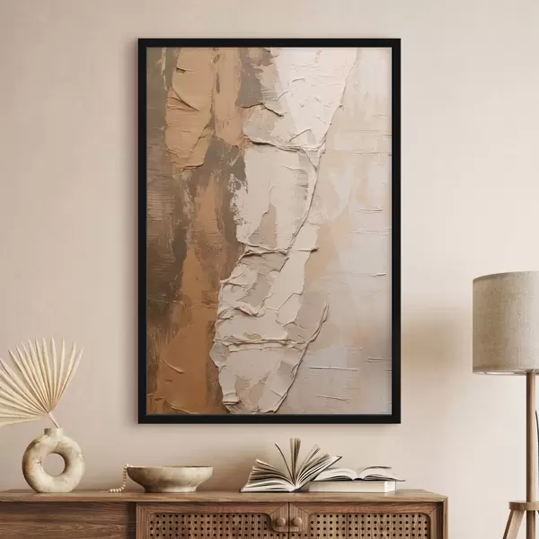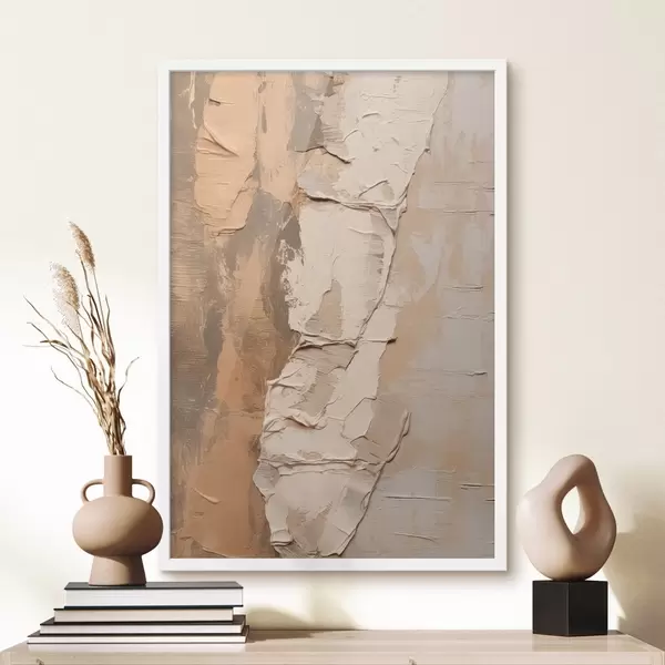 Постер на стіну Абстрактний живопис з густими мазками, бежевими та коричневими тонами, фактурною поверхнею, нейтральною кольоровою гамою Nr f46272
