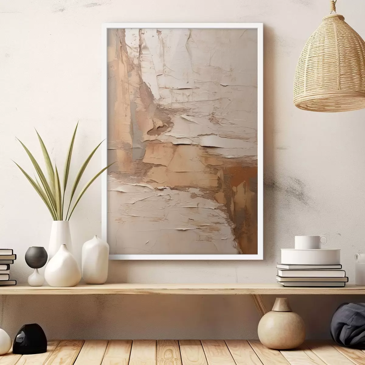 Постер на стіну Абстрактний живопис з густими мазками, бежевими та коричневими тонами, фактурною поверхнею, нейтральною кольоровою гамою Nr f46273