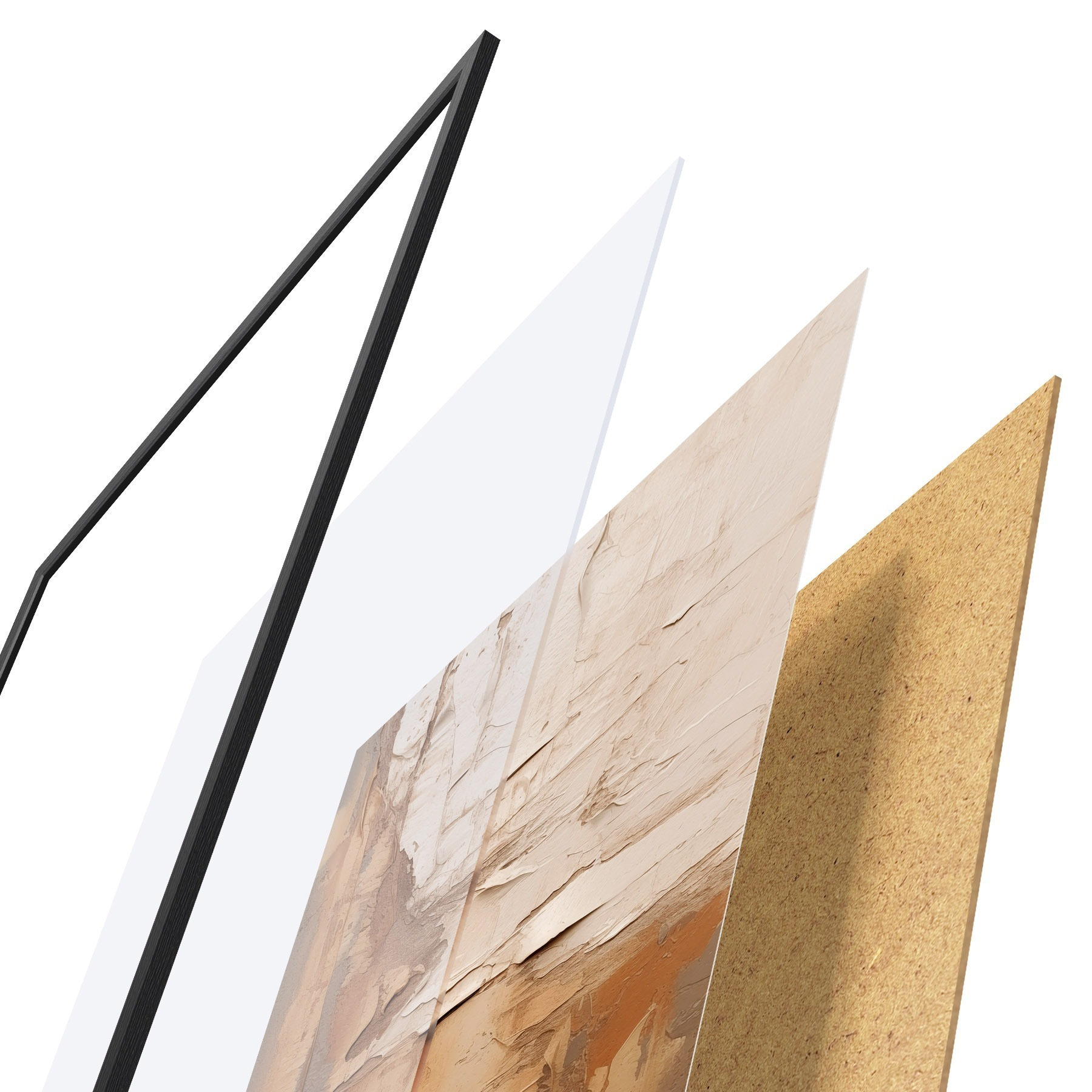 Постер складається з рами, оргскла, надрукованого зображення та підкладки з ДСП. Завдяки кріпленням на звороті плакат можна одразу ж повісити на стіну.