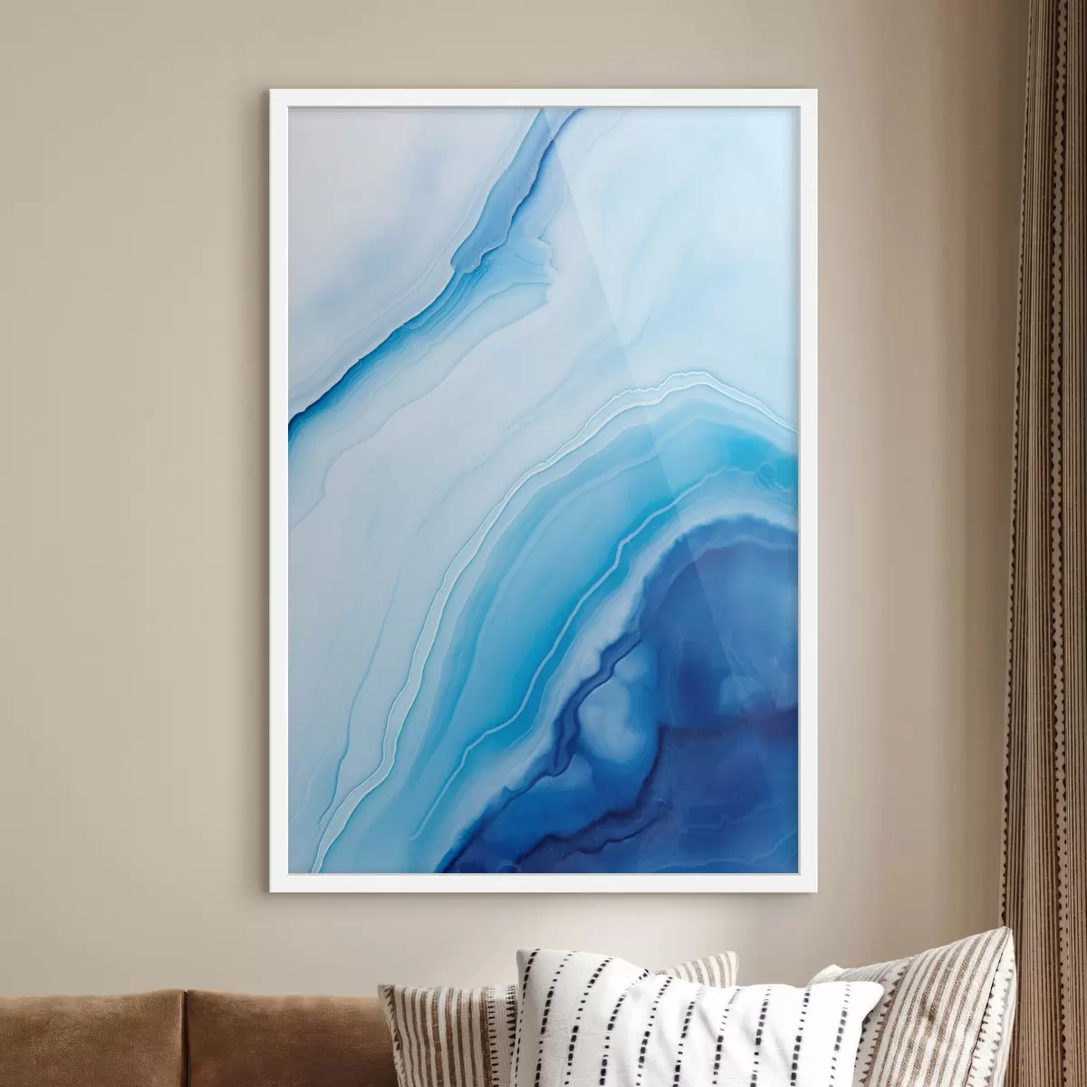 Постер на стіну Абстрактний синьо-білий агатний принт, закручені лінії та градієнти, гладка текстура, сучасне мистецтво, мінімалізм Nr f46290