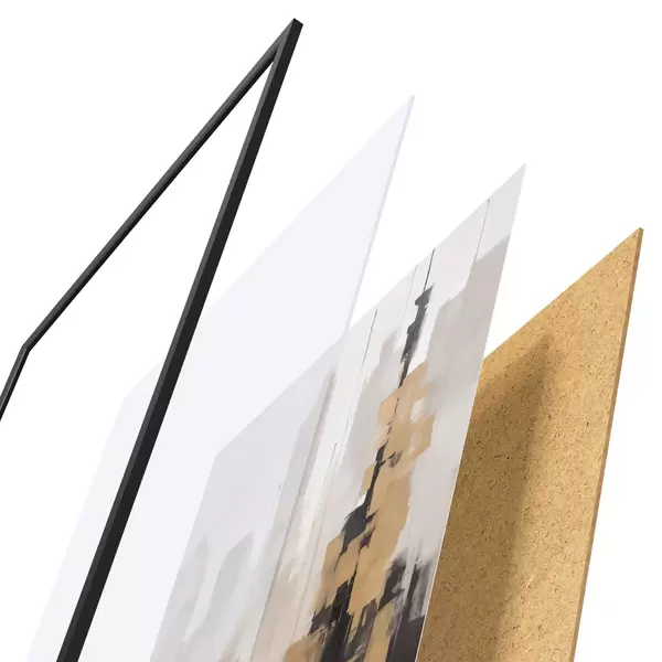 Постер складається з рами, оргскла, надрукованого зображення та підкладки з ДСП. Завдяки кріпленням на звороті плакат можна одразу ж повісити на стіну.