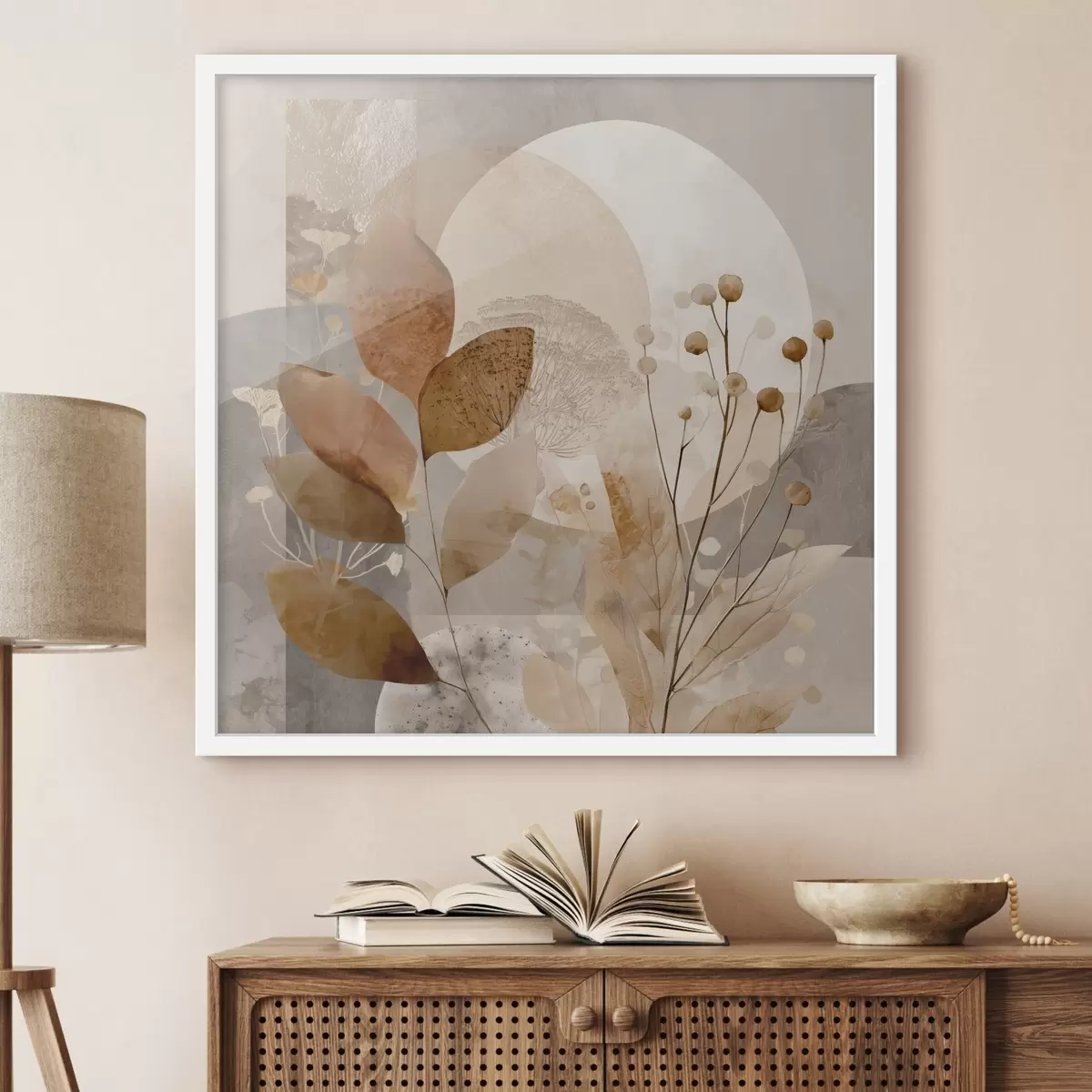 Постер на стіну Квітковий візерунок в бежевому та коричневому кольорах Nr f46308