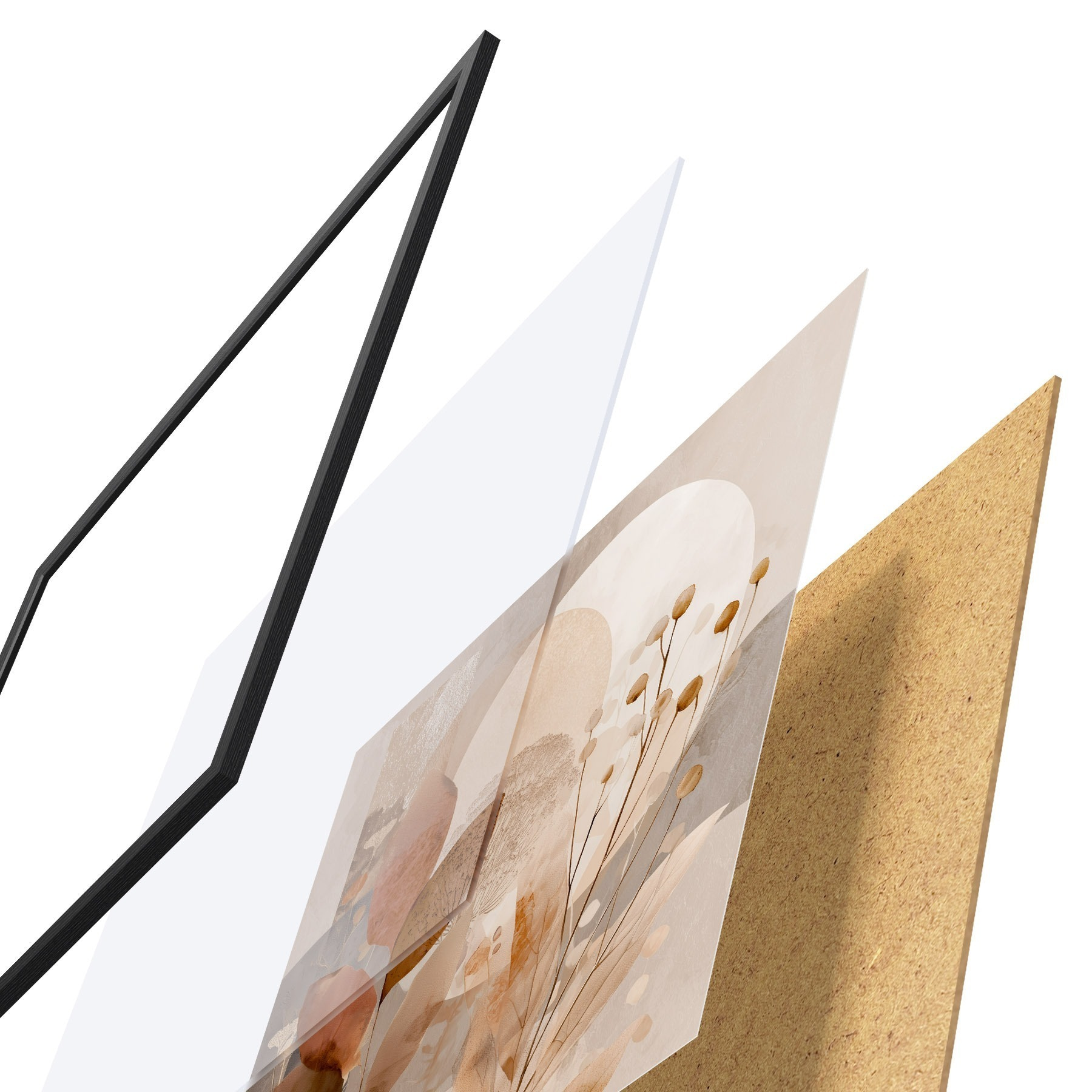 Постер складається з рами, оргскла, надрукованого зображення та підкладки з ДСП. Завдяки кріпленням на звороті плакат можна одразу ж повісити на стіну.