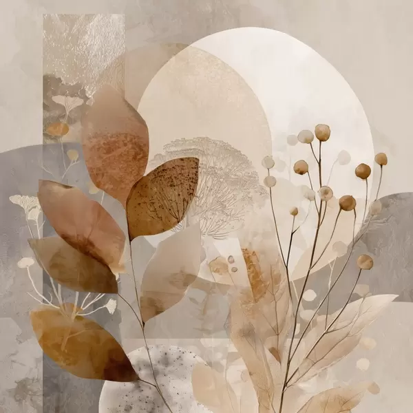 Постер на стіну Квітковий візерунок в бежевому та коричневому кольорах Nr f46308