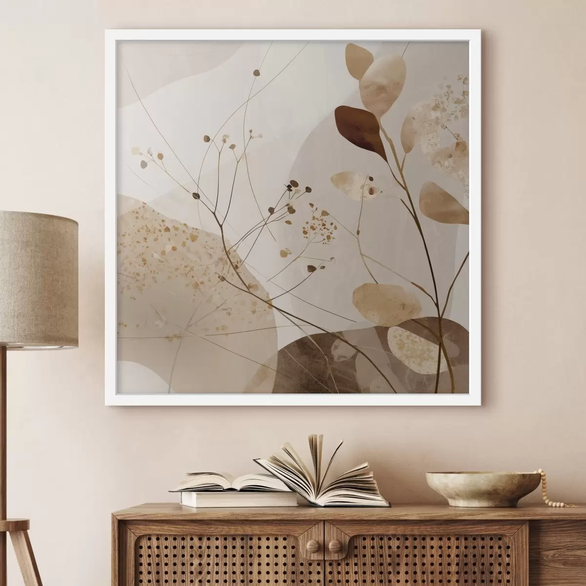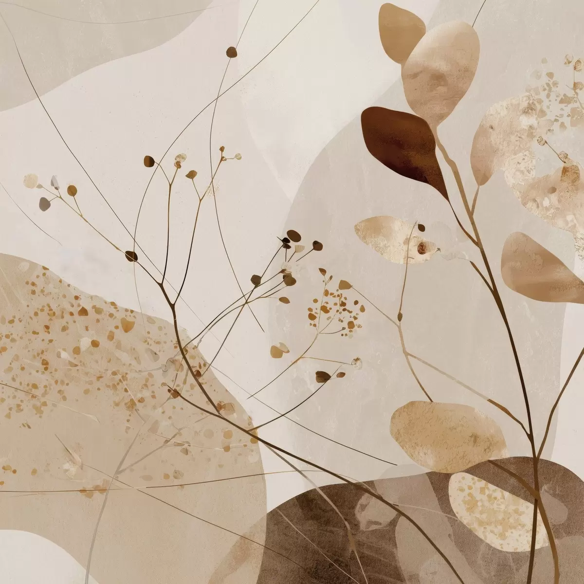 Постер на стіну Абстрактні форми та рослинні мотиви в бежевих тонах Nr f46309