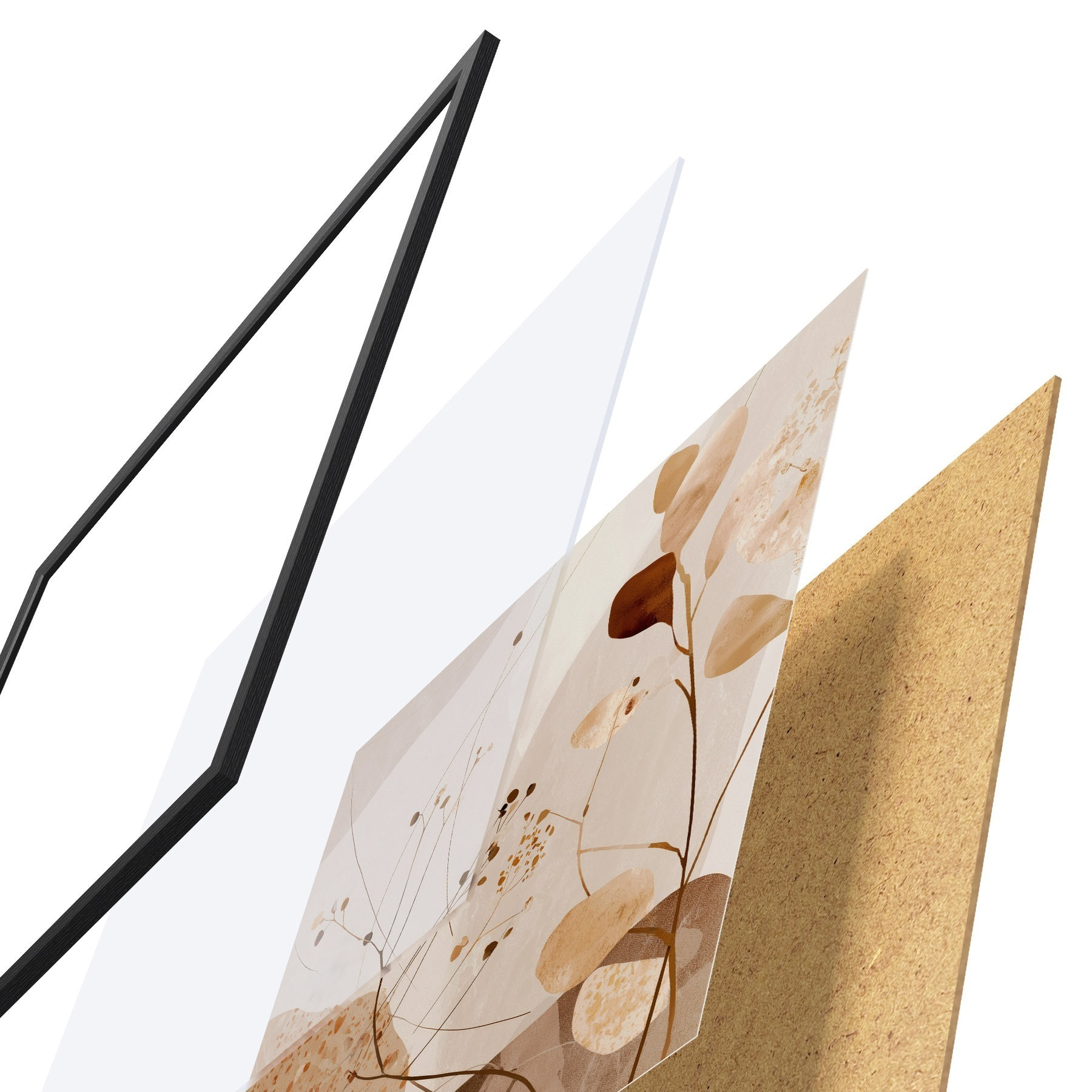 Постер складається з рами, оргскла, надрукованого зображення та підкладки з ДСП. Завдяки кріпленням на звороті плакат можна одразу ж повісити на стіну.