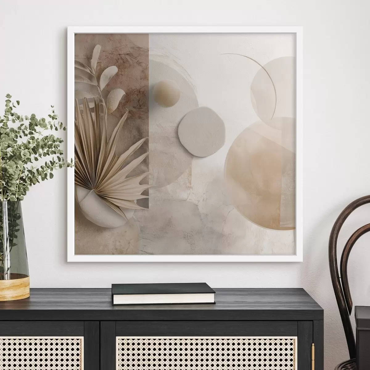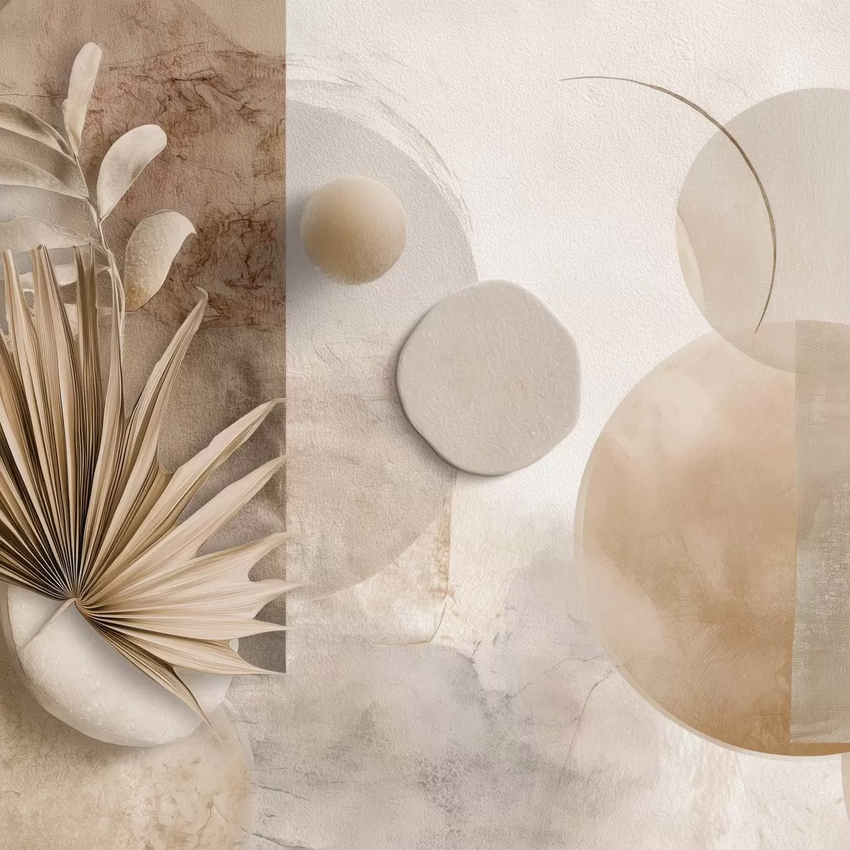 Постер на стіну Сушені пальмові листя і 3D-кола в бежевих тонах Nr f46310