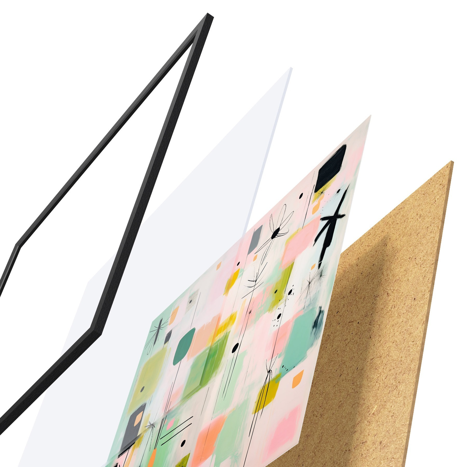 Постер складається з рами, оргскла, надрукованого зображення та підкладки з ДСП. Завдяки кріпленням на звороті плакат можна одразу ж повісити на стіну.